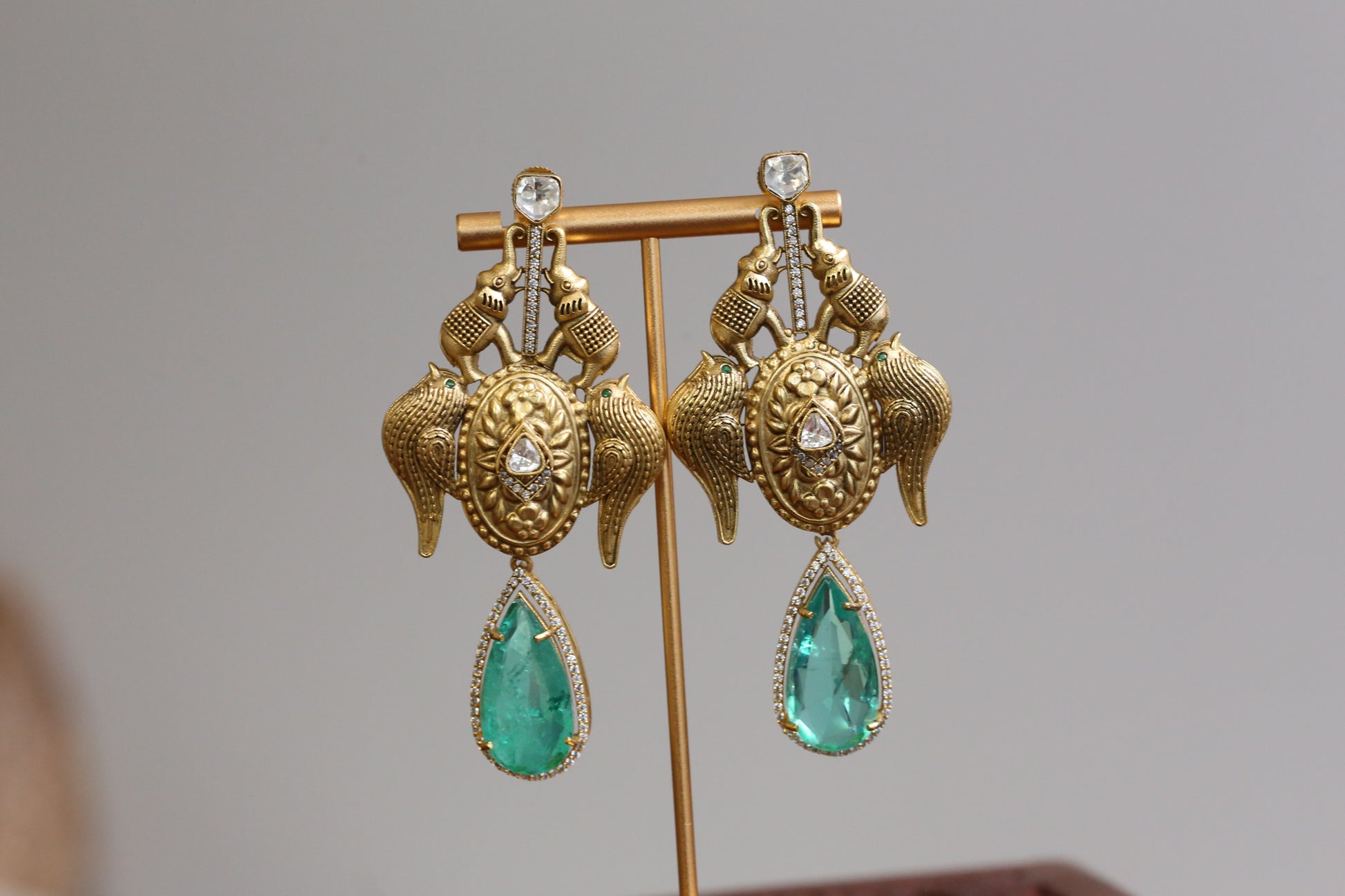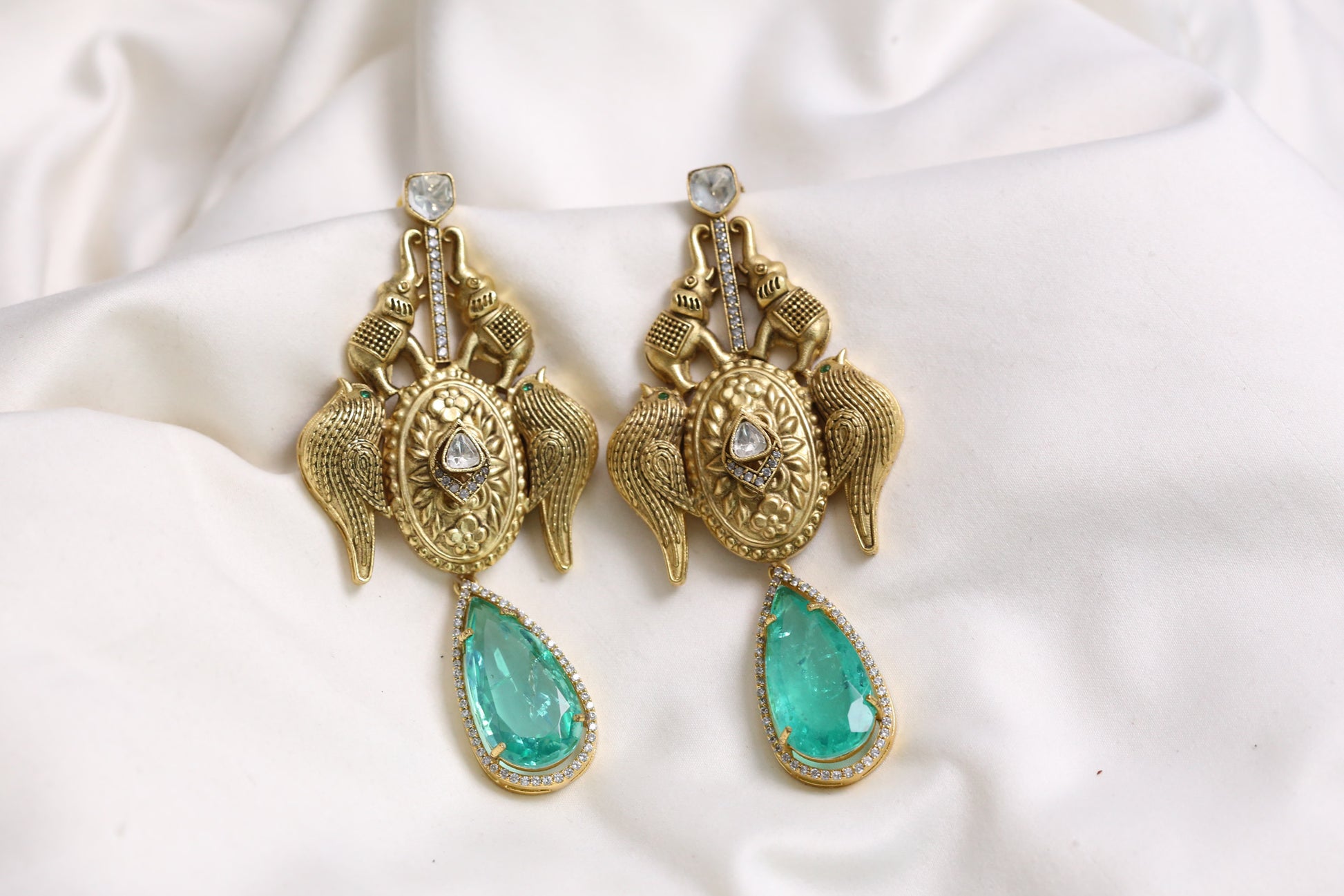 Matt Gold Designer Kundan Doublet Earrings - Mint