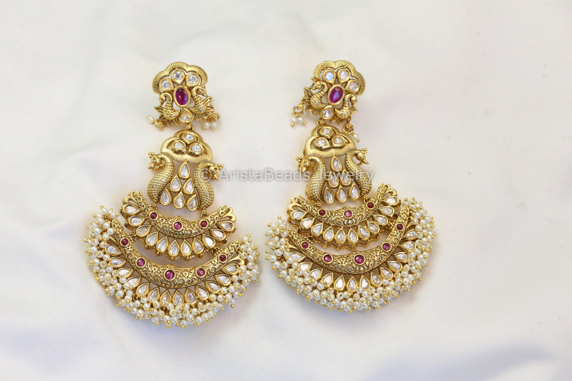 Matt Gold Polki Kundan Chandbaali - Ruby