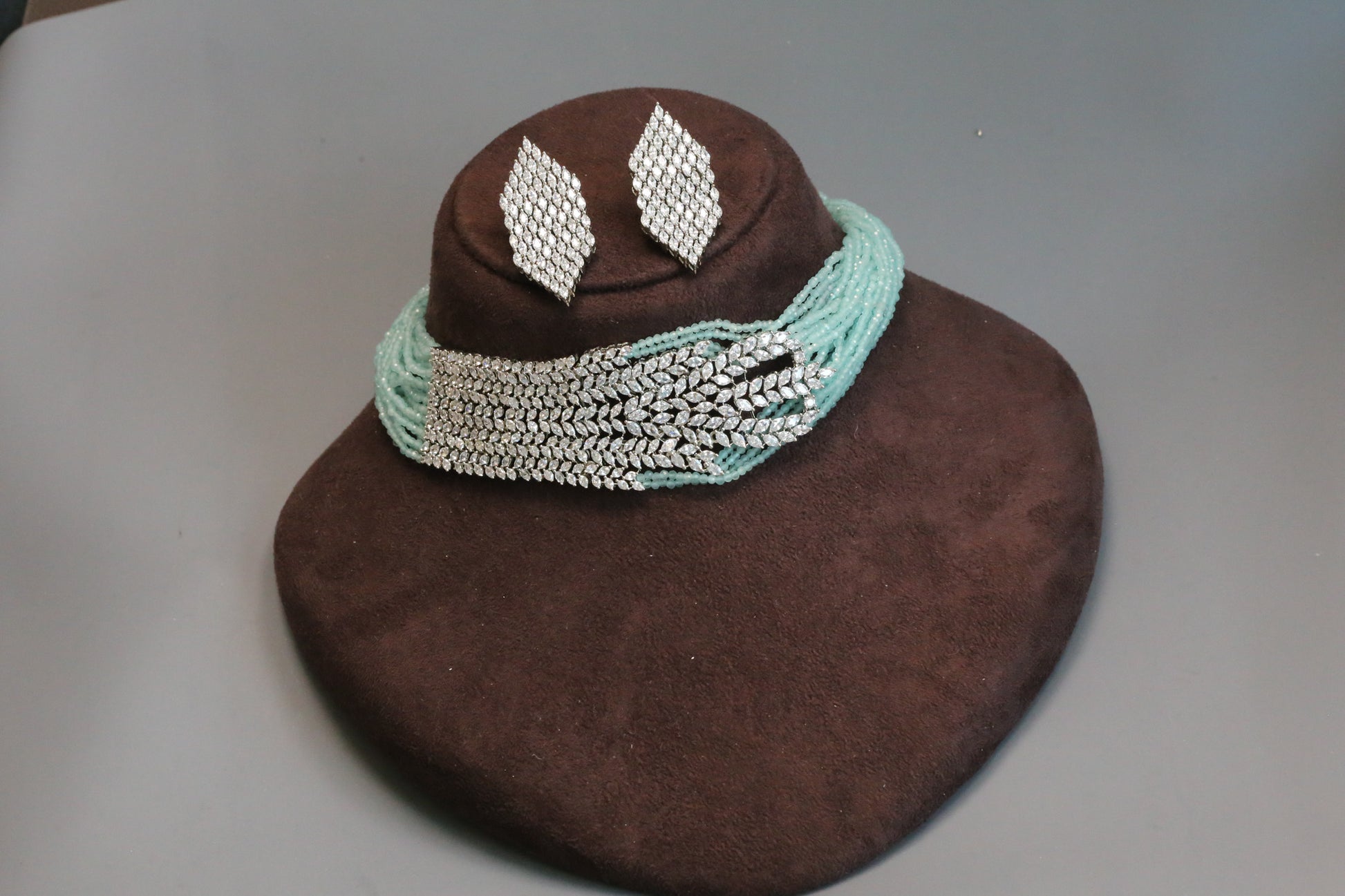 Mint Crystal Beaded CZ Choker Set