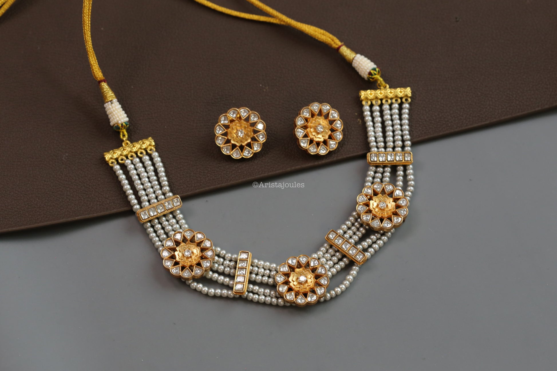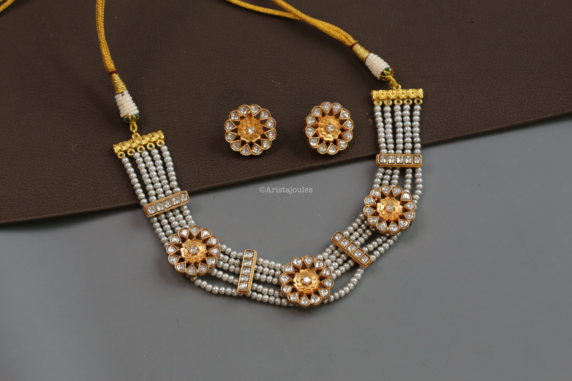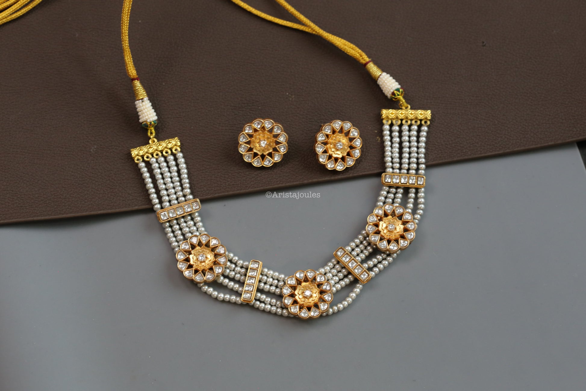 Mogra Vintage Look Kundan Necklace Set - Clear