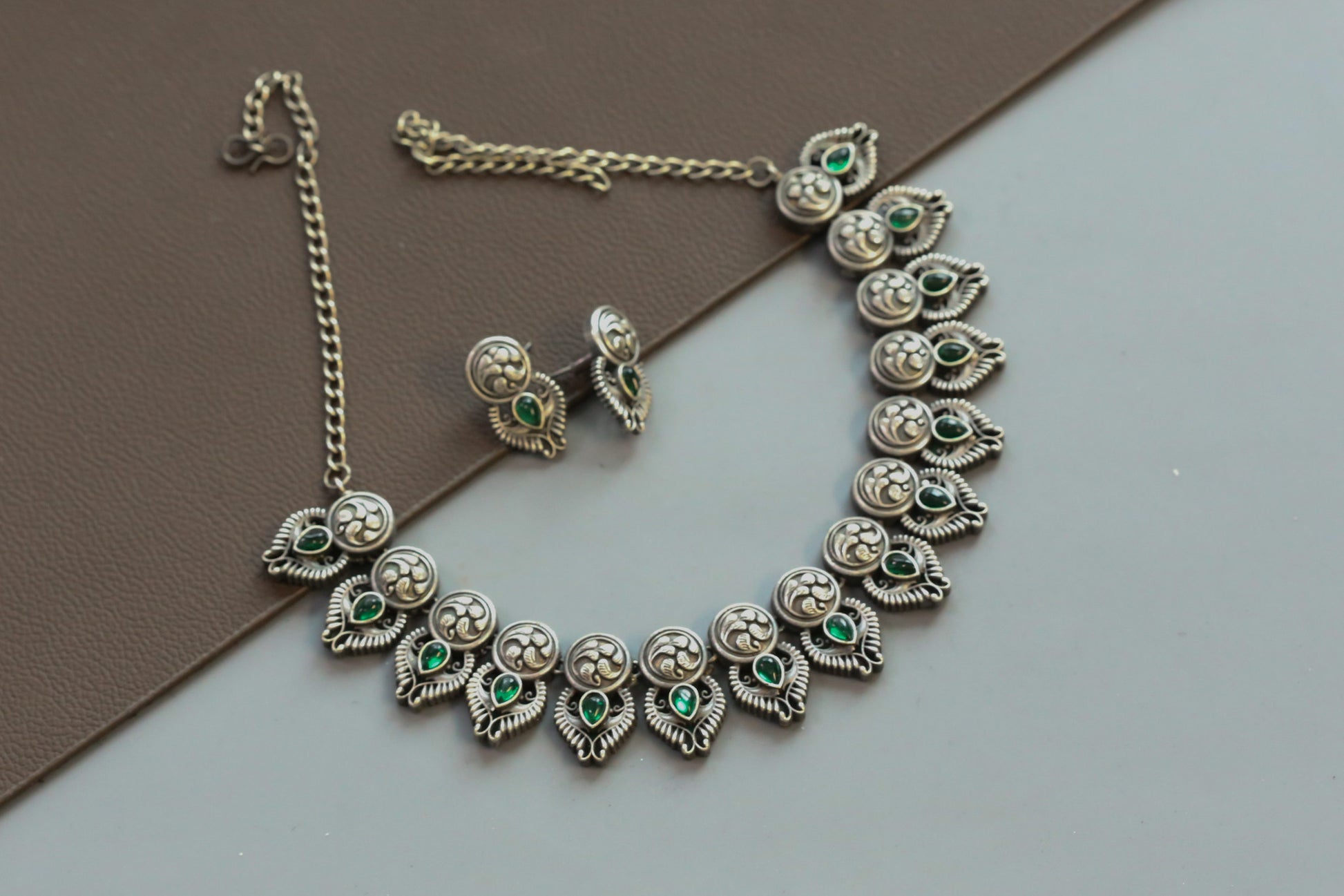 Nakshi Oxidized Necklace Set - Green
