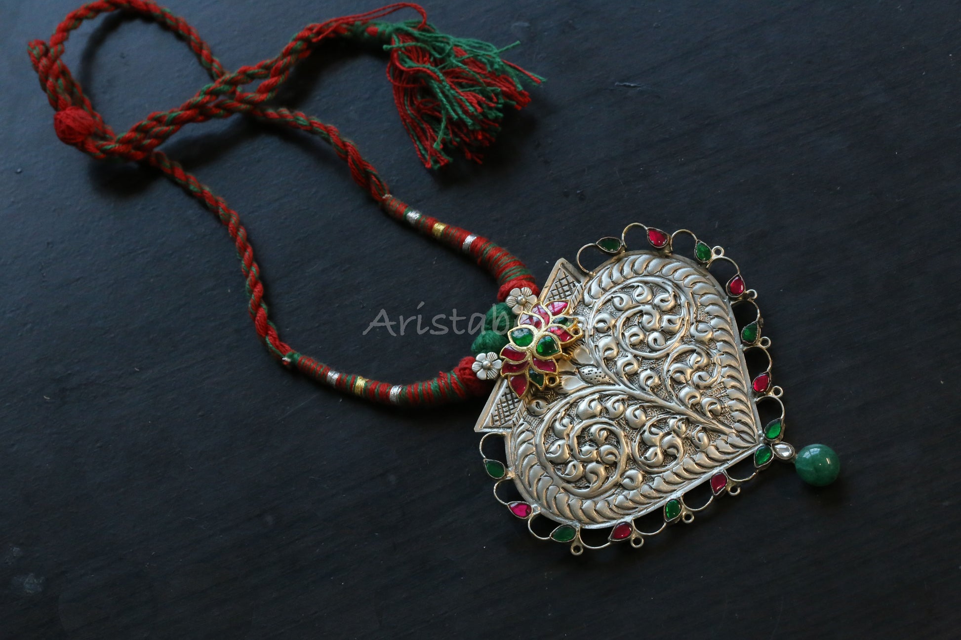 Shakti Next To Real Silver Carved Oxidized Necklace (T103-06)