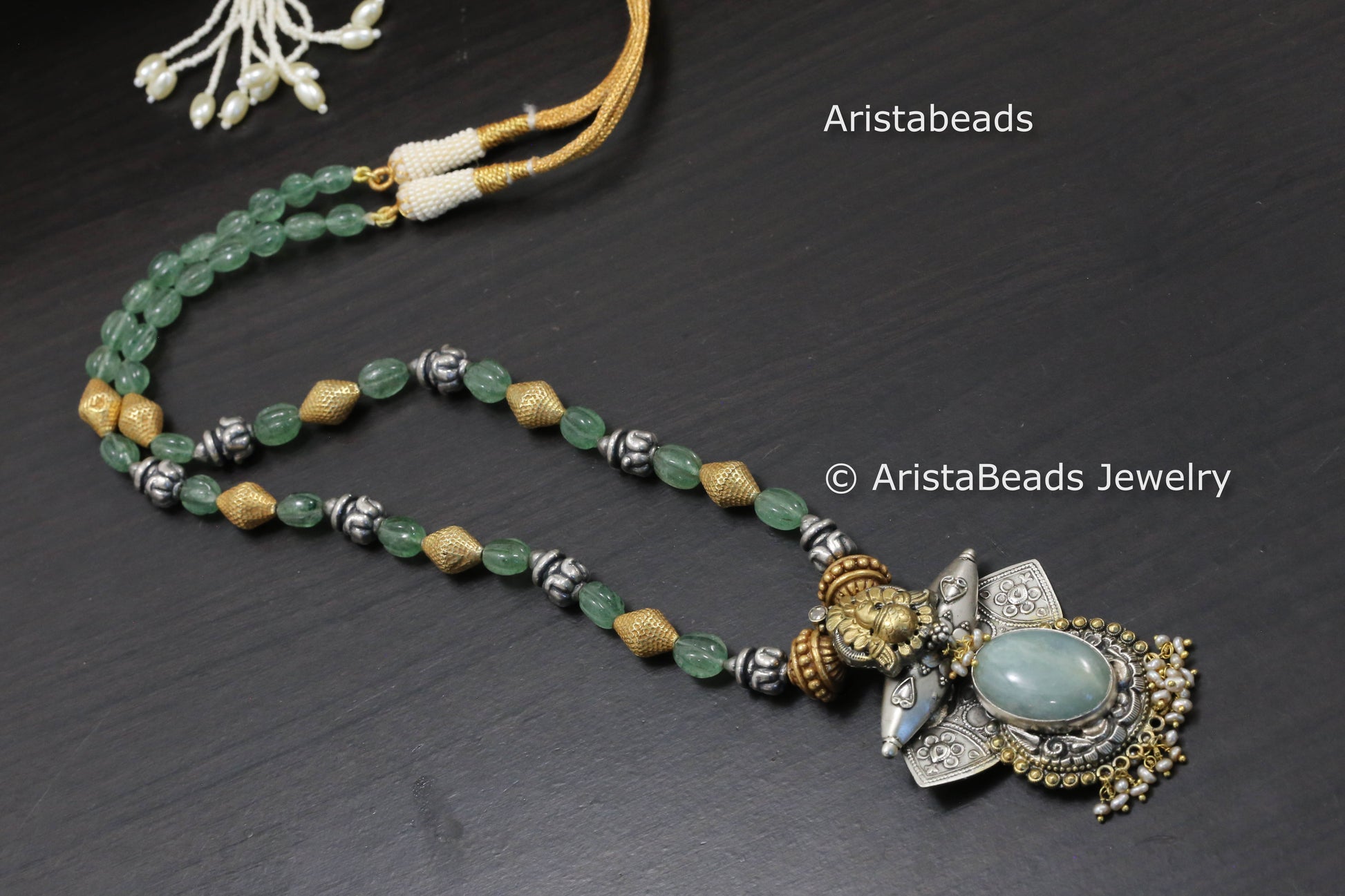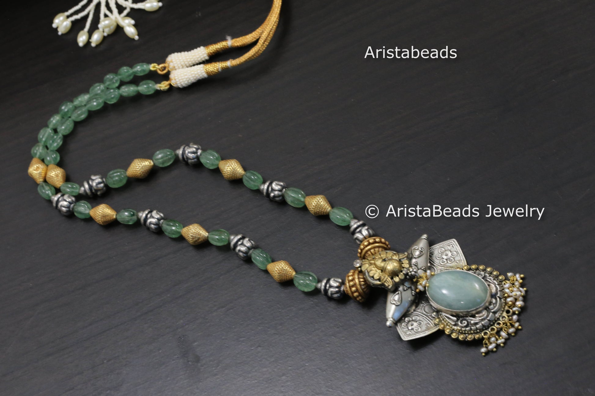 One Of A Kind 925 Sterling Silver Necklace - Larimar & Carved Quartz