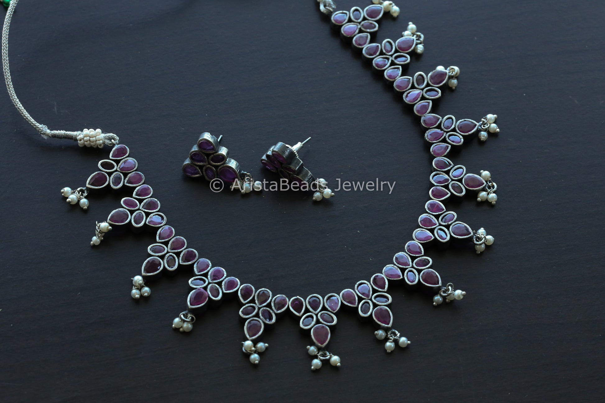 Oxidized CZ Stones Necklace - Ruby