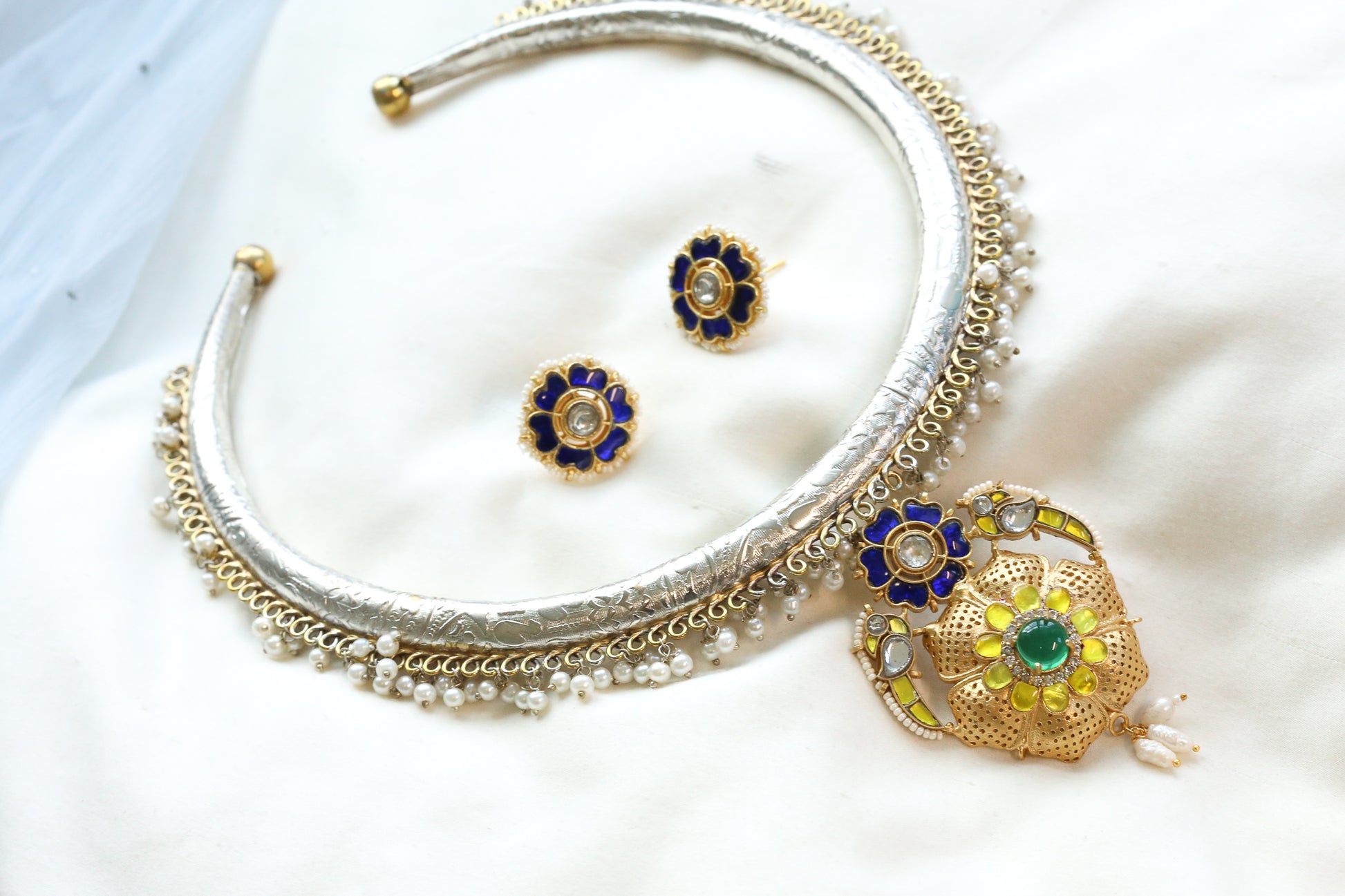 Dhara Oxidized Kundan Hasli Necklace Set (T102-08)