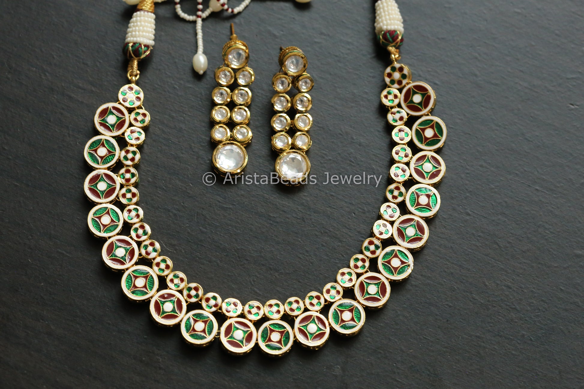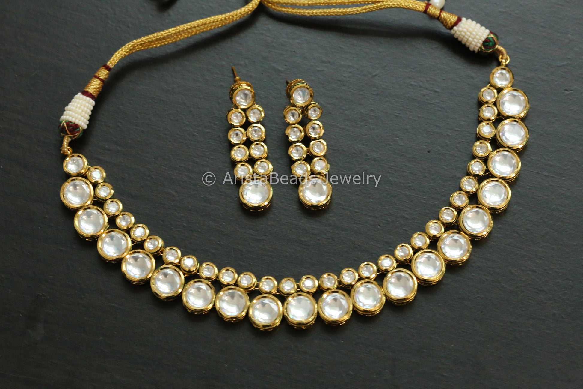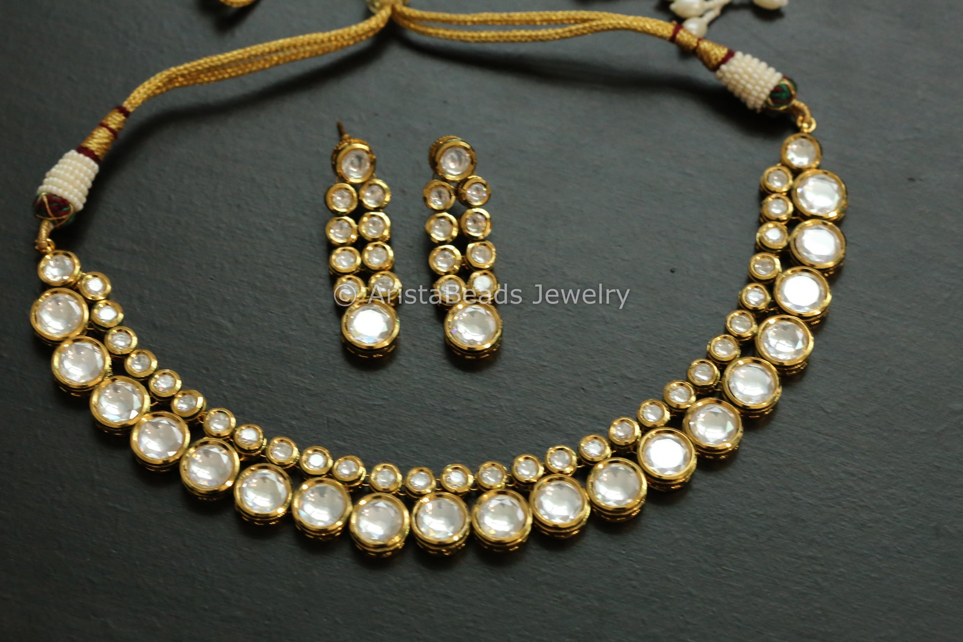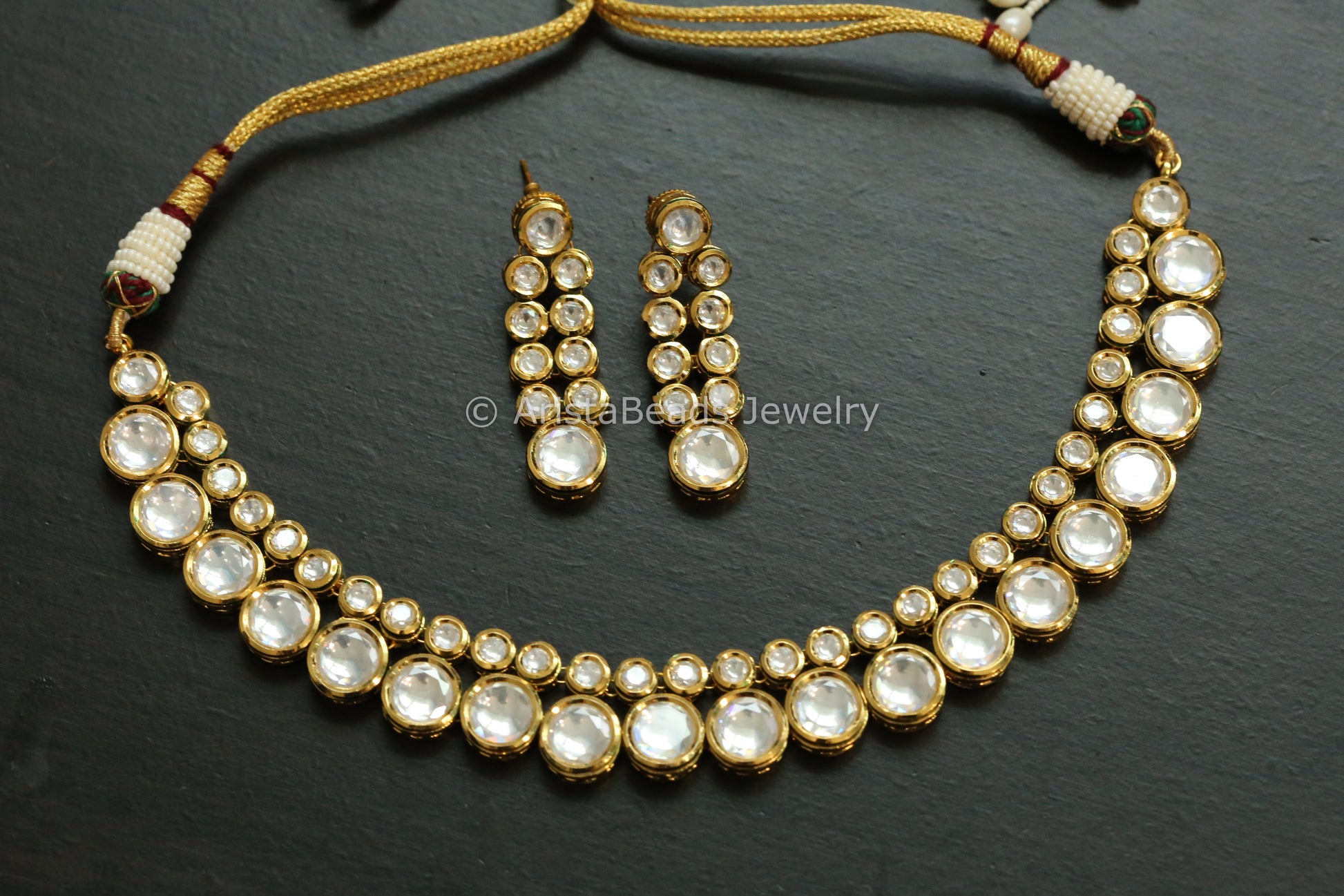 Premium Bikaneri Kundan Necklace Set - Round Kundan