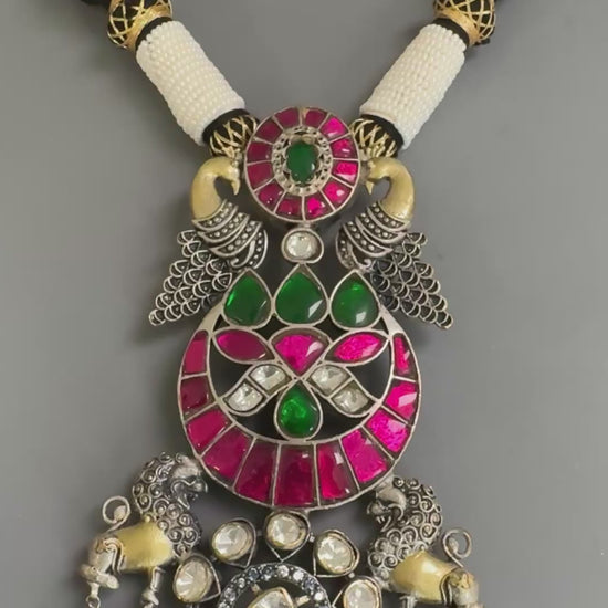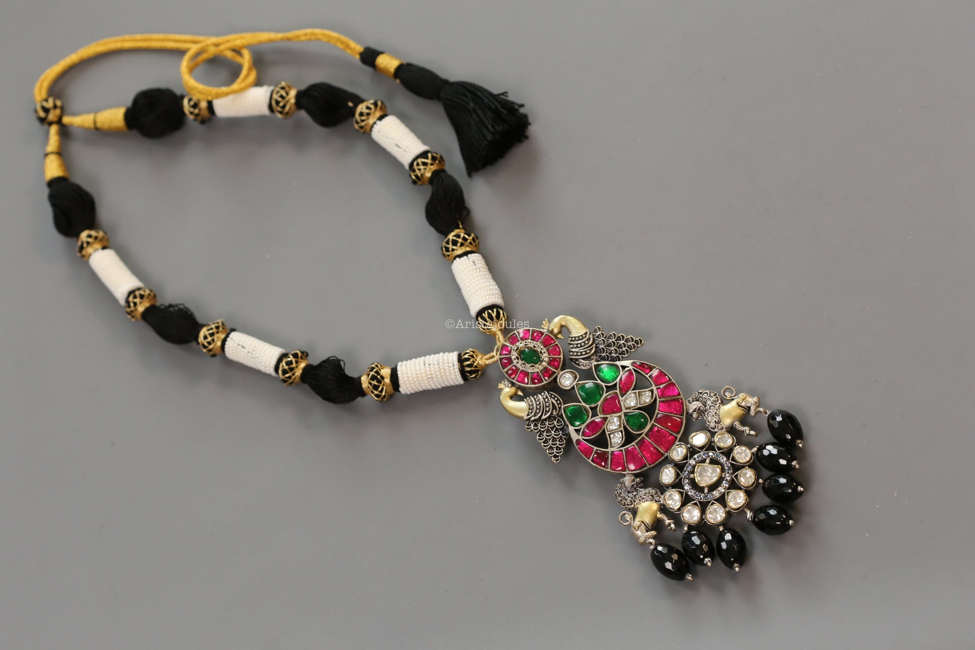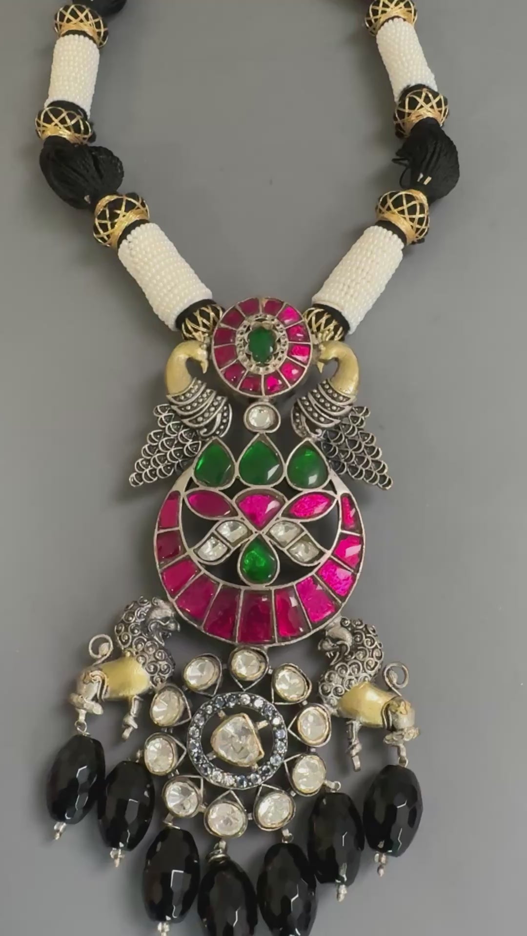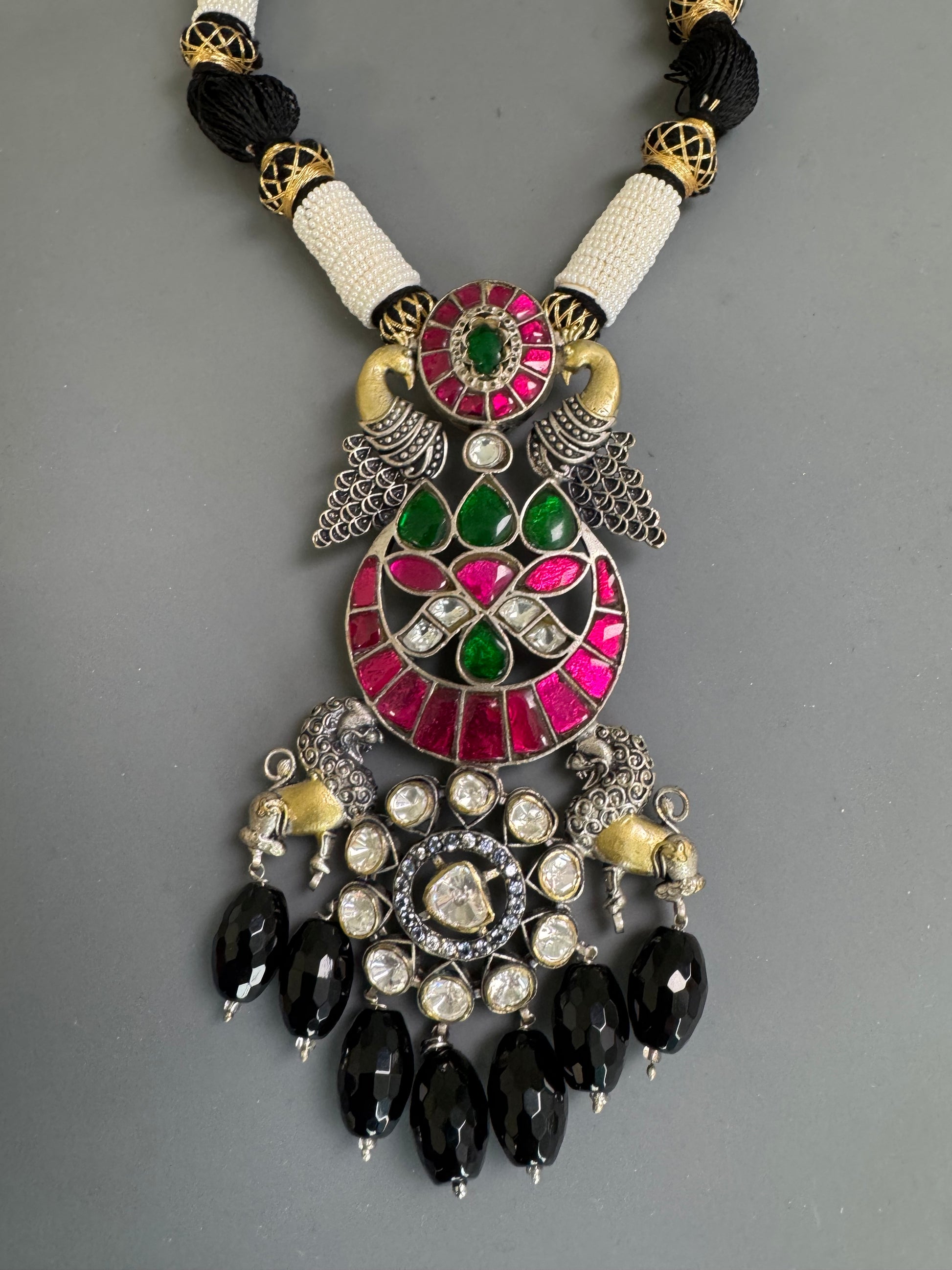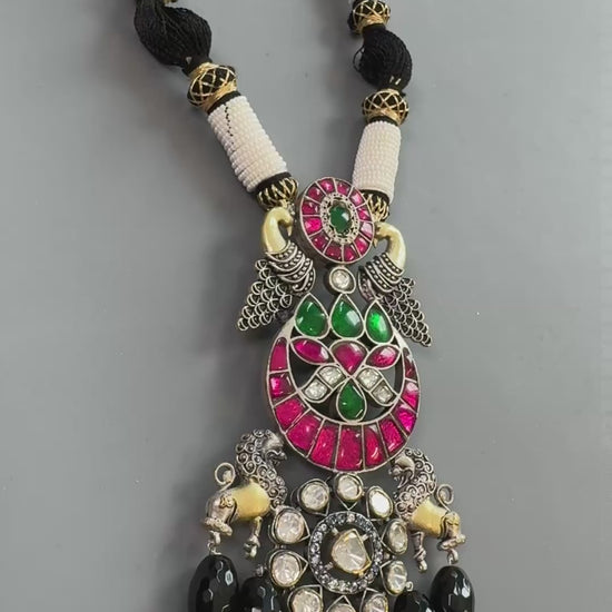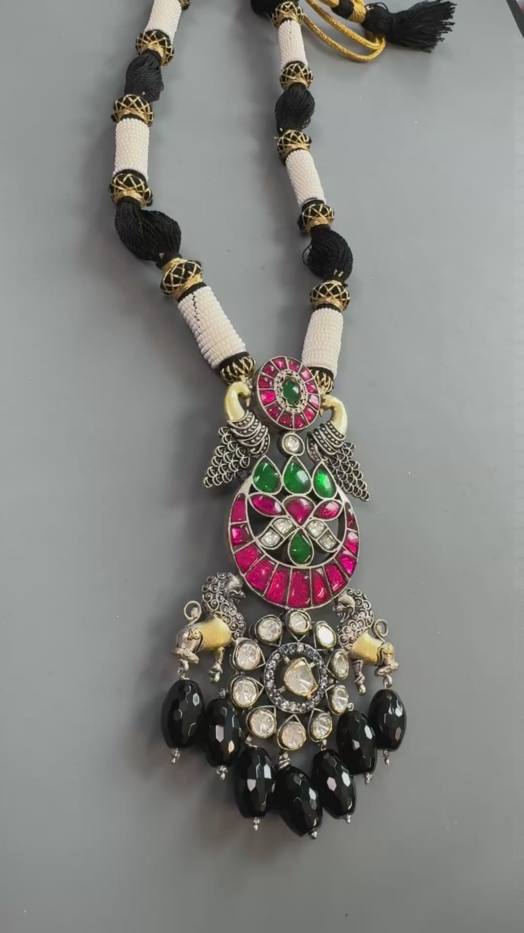 ✨ Set in real moissanite polkies and kundan jadau, this pendant features striking real black onyx drops that exude bold sophistication.