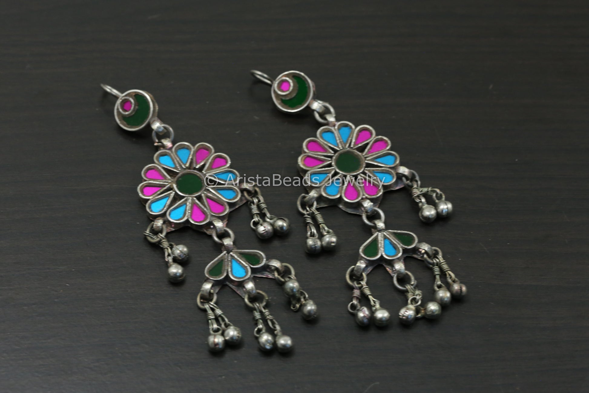 Real Glass Earrings - Pink, Blue & Green