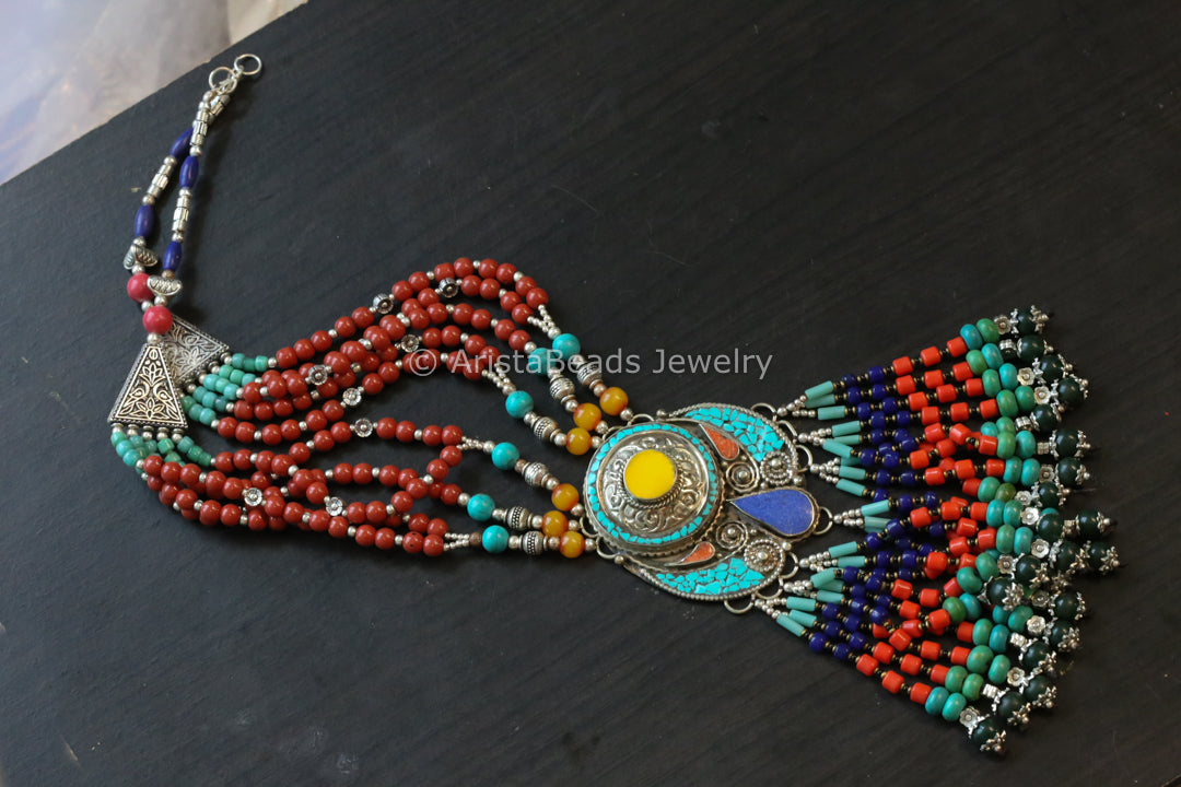 Real Tibetan Necklace With Semiprecious Stones - Design 13