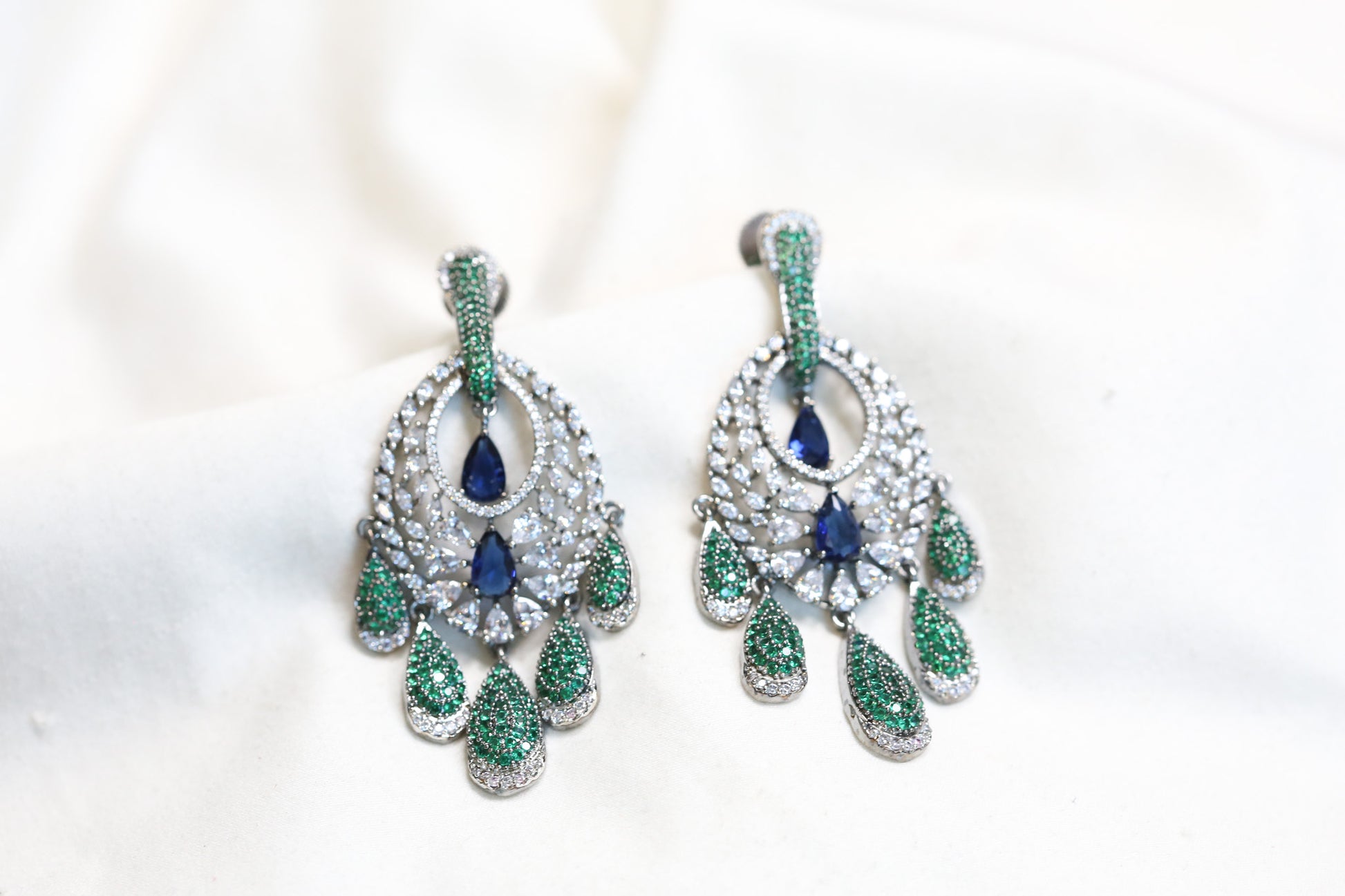 Rekha Micro CZ Earrings - Green Blue