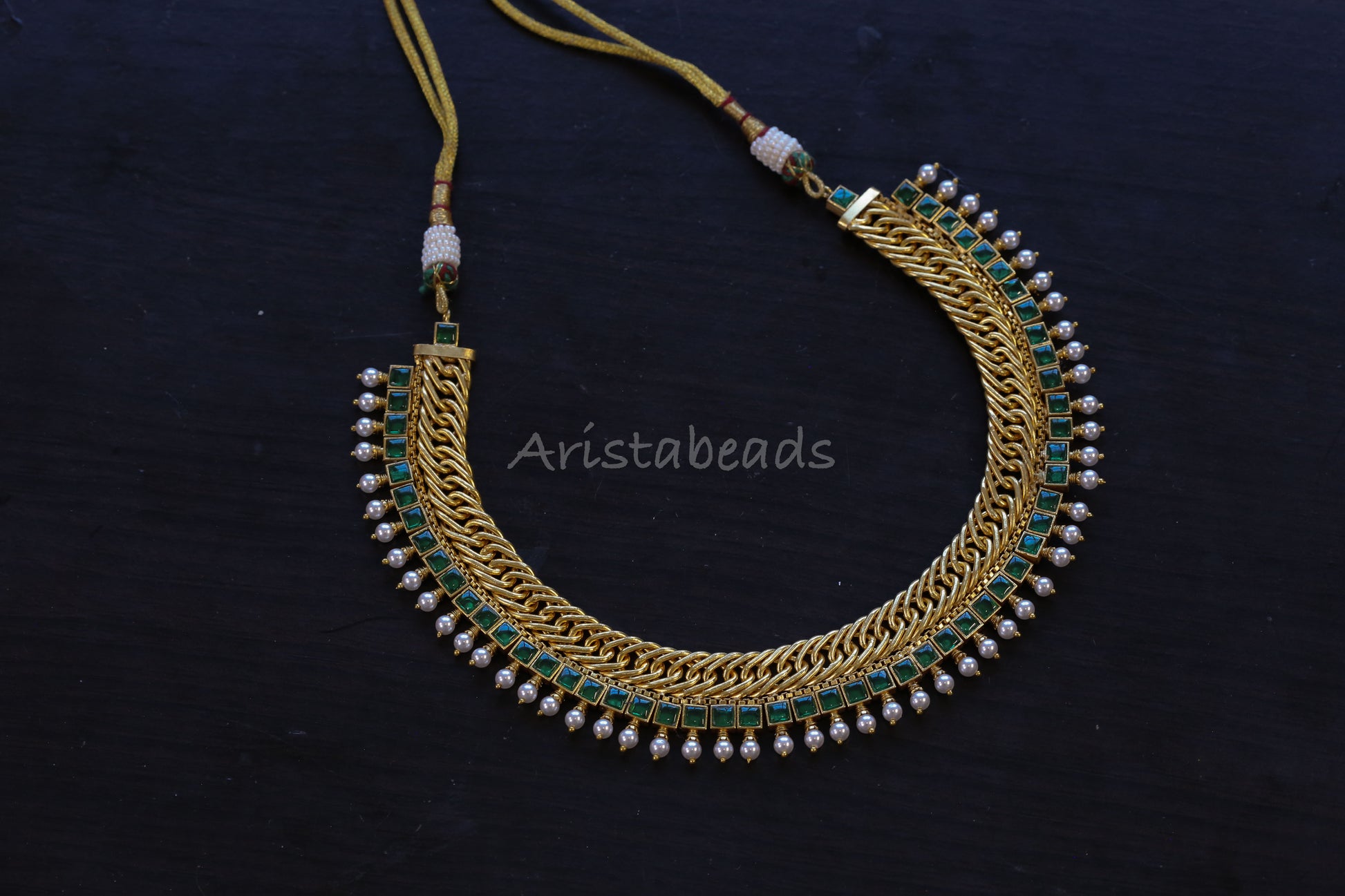 Reversible Shell Pearls Handmade Jalebi Necklace - Green (103-95)