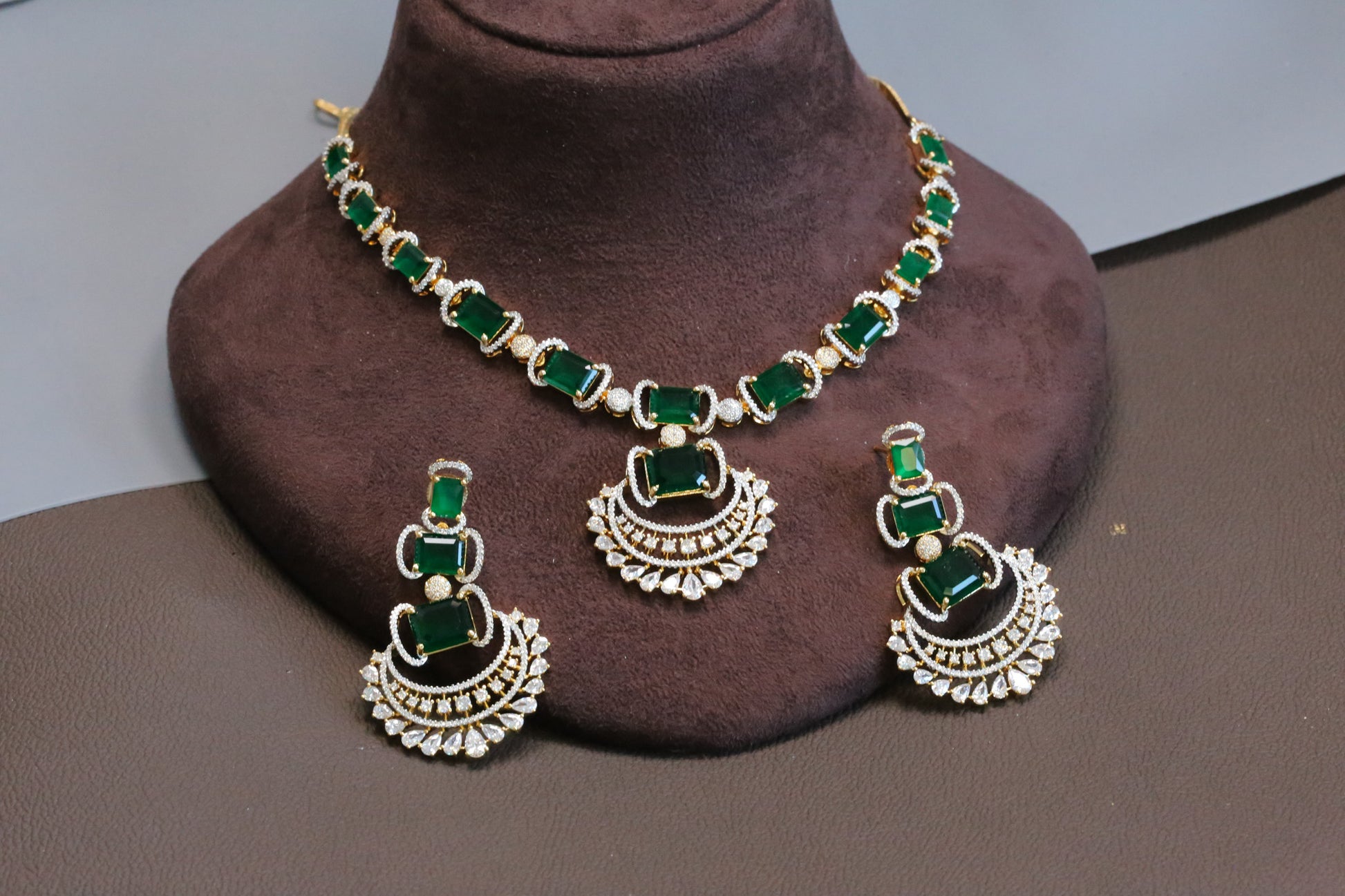 Add a splash of charm with the Ridhi Chandbaali CZ Necklace Set in refreshing mint—a perfect playful sparkle for any occasion.
