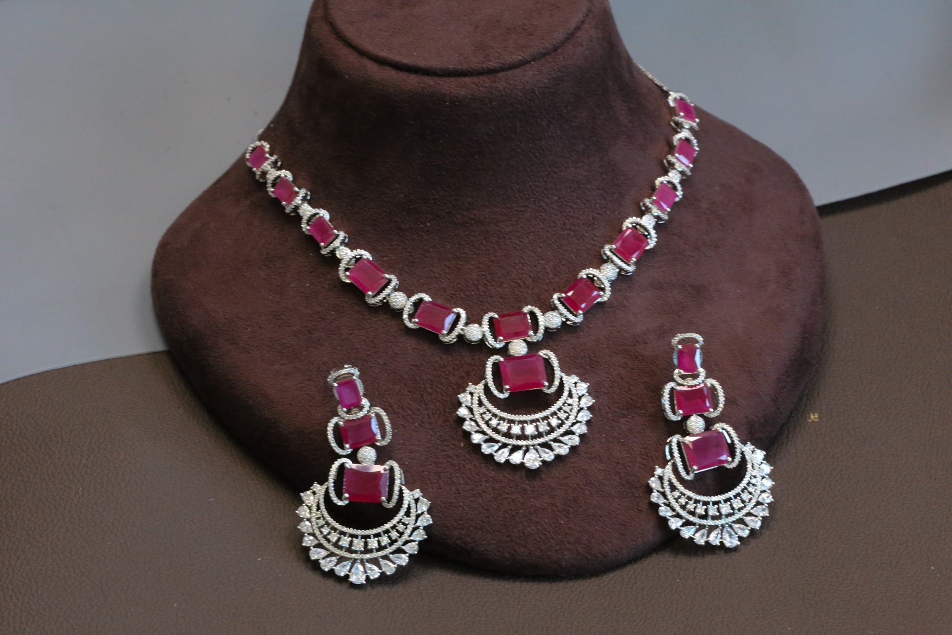 Ridhi Chandbaali CZ Necklace Set - Ruby