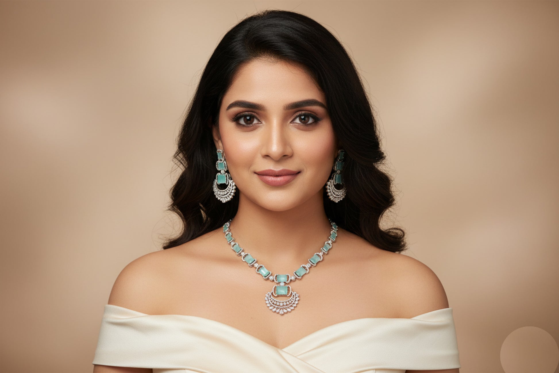 Ridhi Chandbaali CZ Necklace Set - Mint