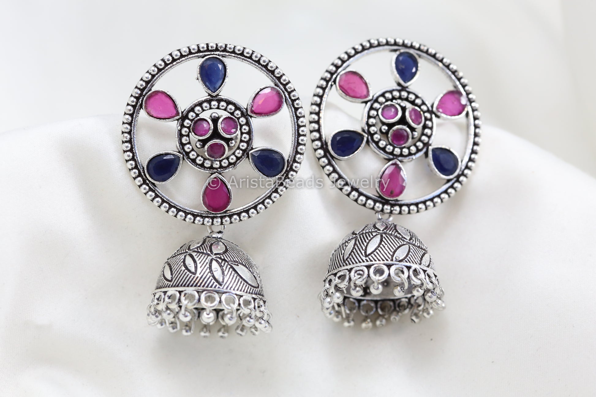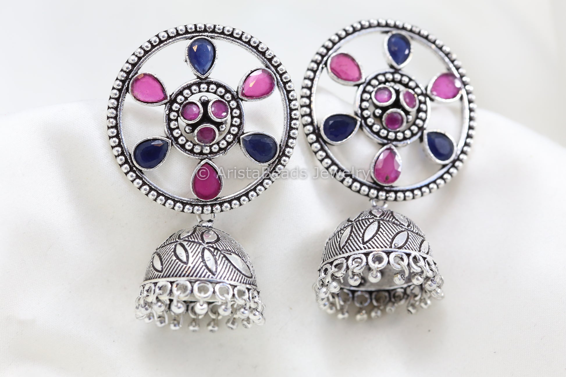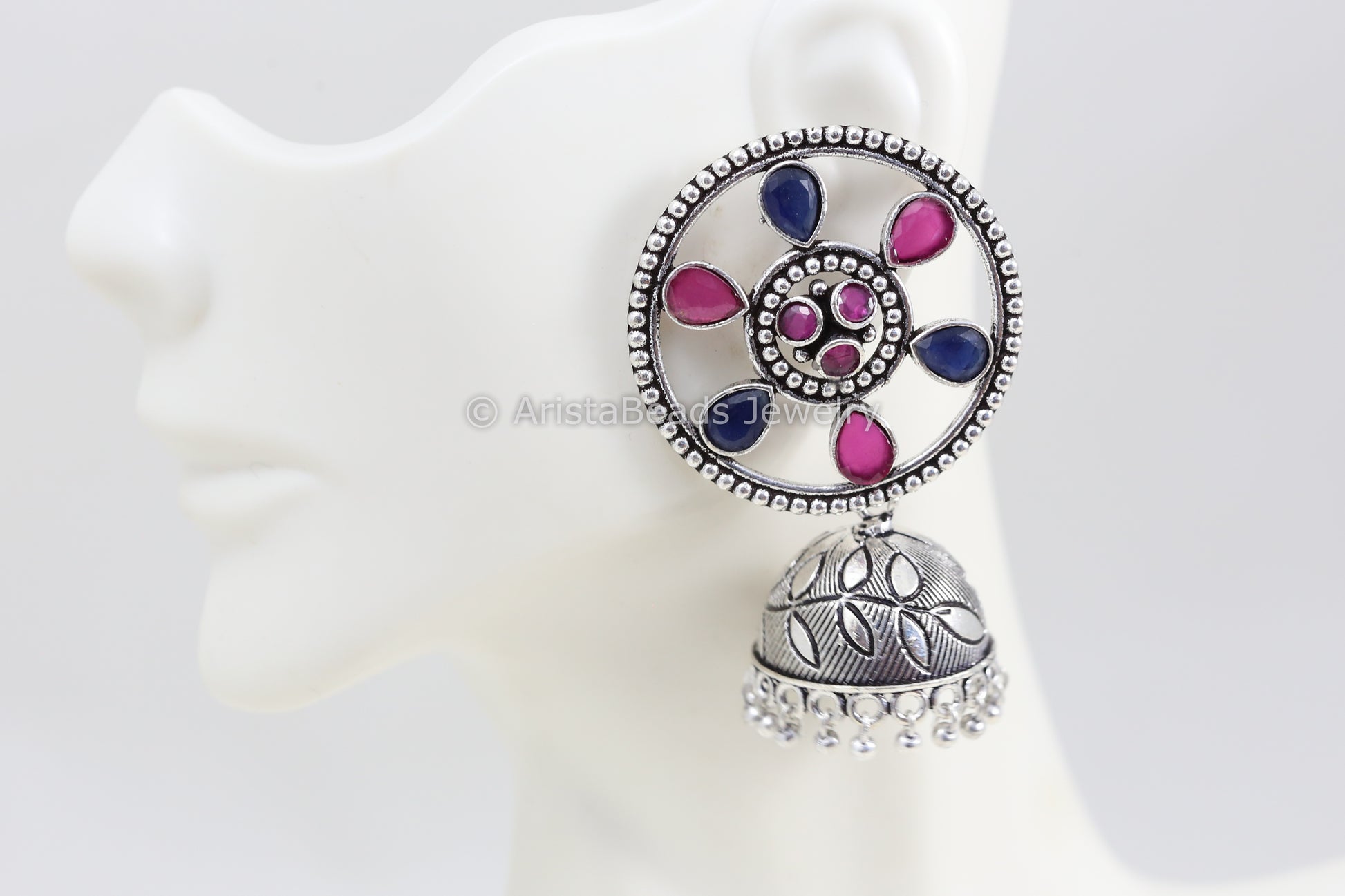 Round Stud Jhumka - Blue Ruby Stones