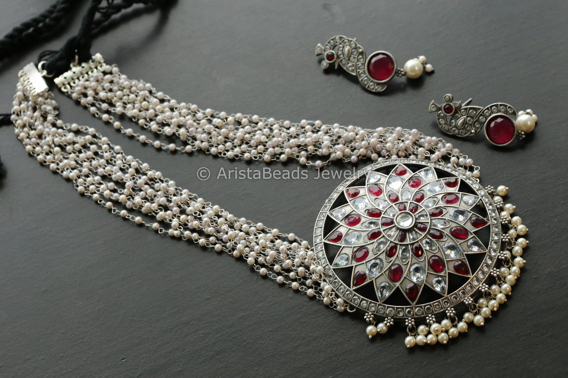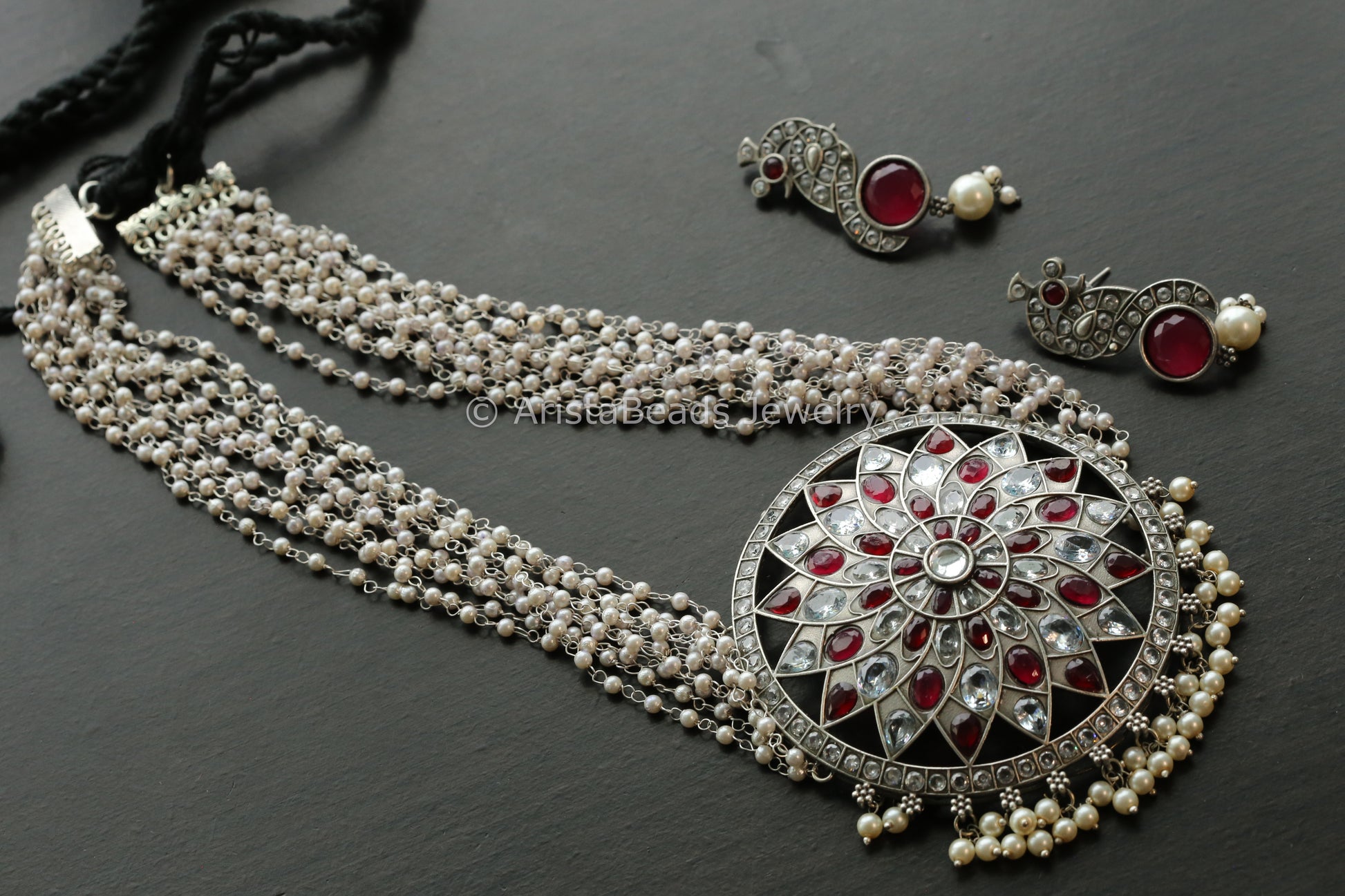 Ruby Clear Oxidized Necklace Set