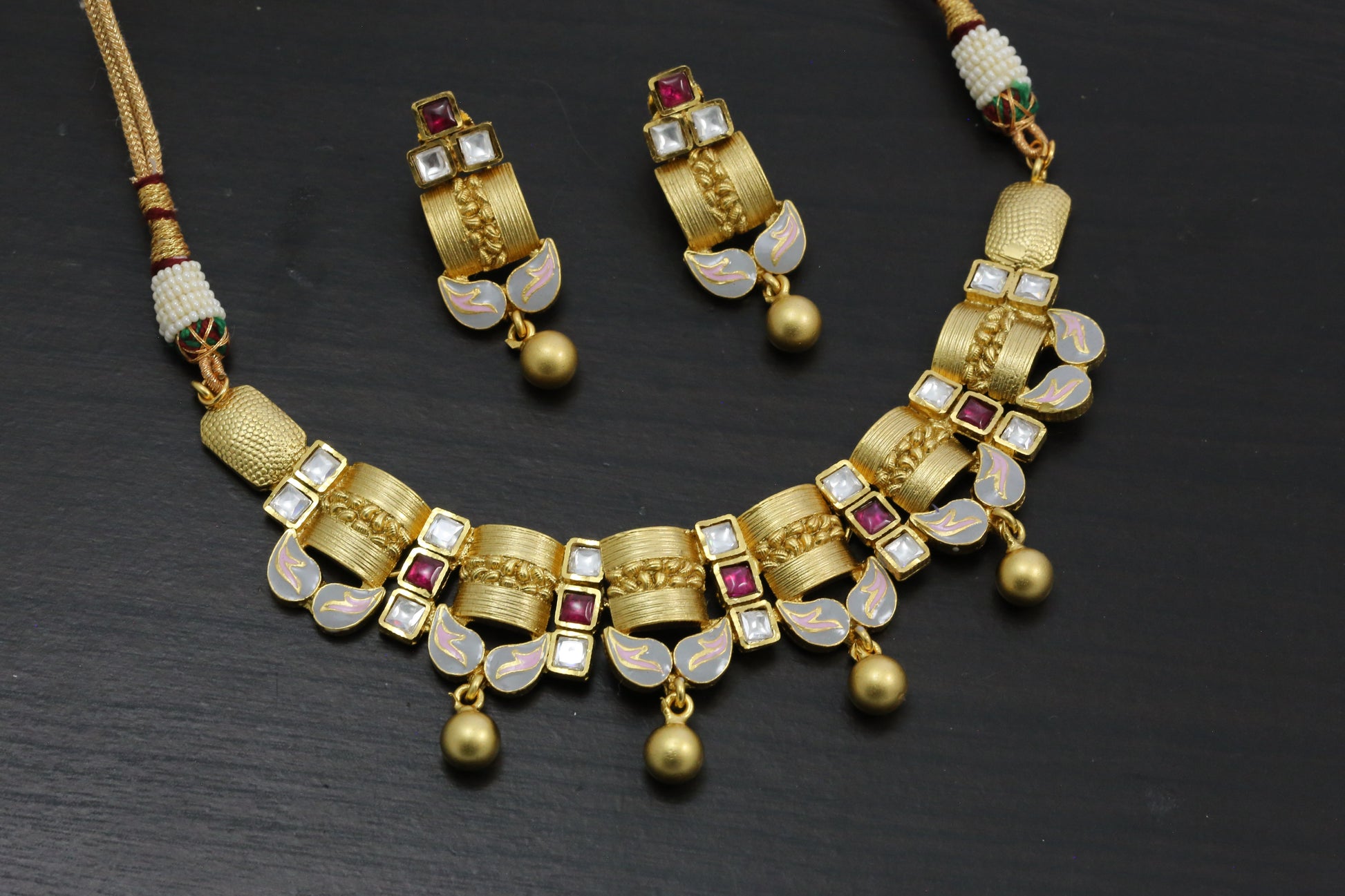 Ruhi Kundan Polki Enamel Set - Gray