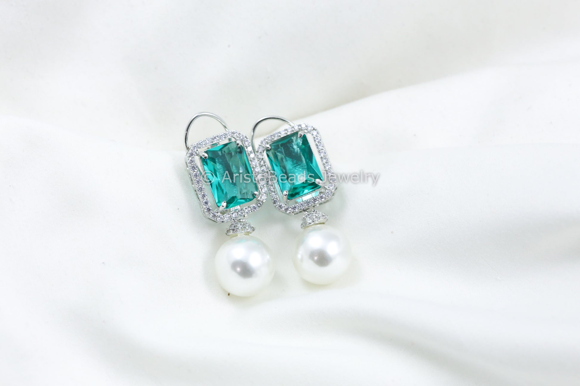 Sea Green CZ Pearl Earrings