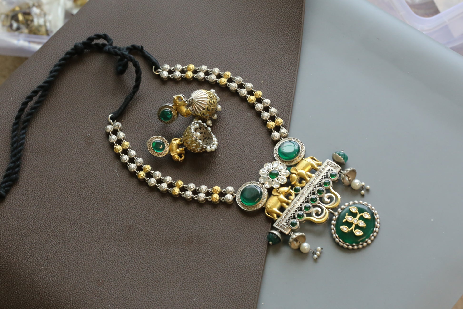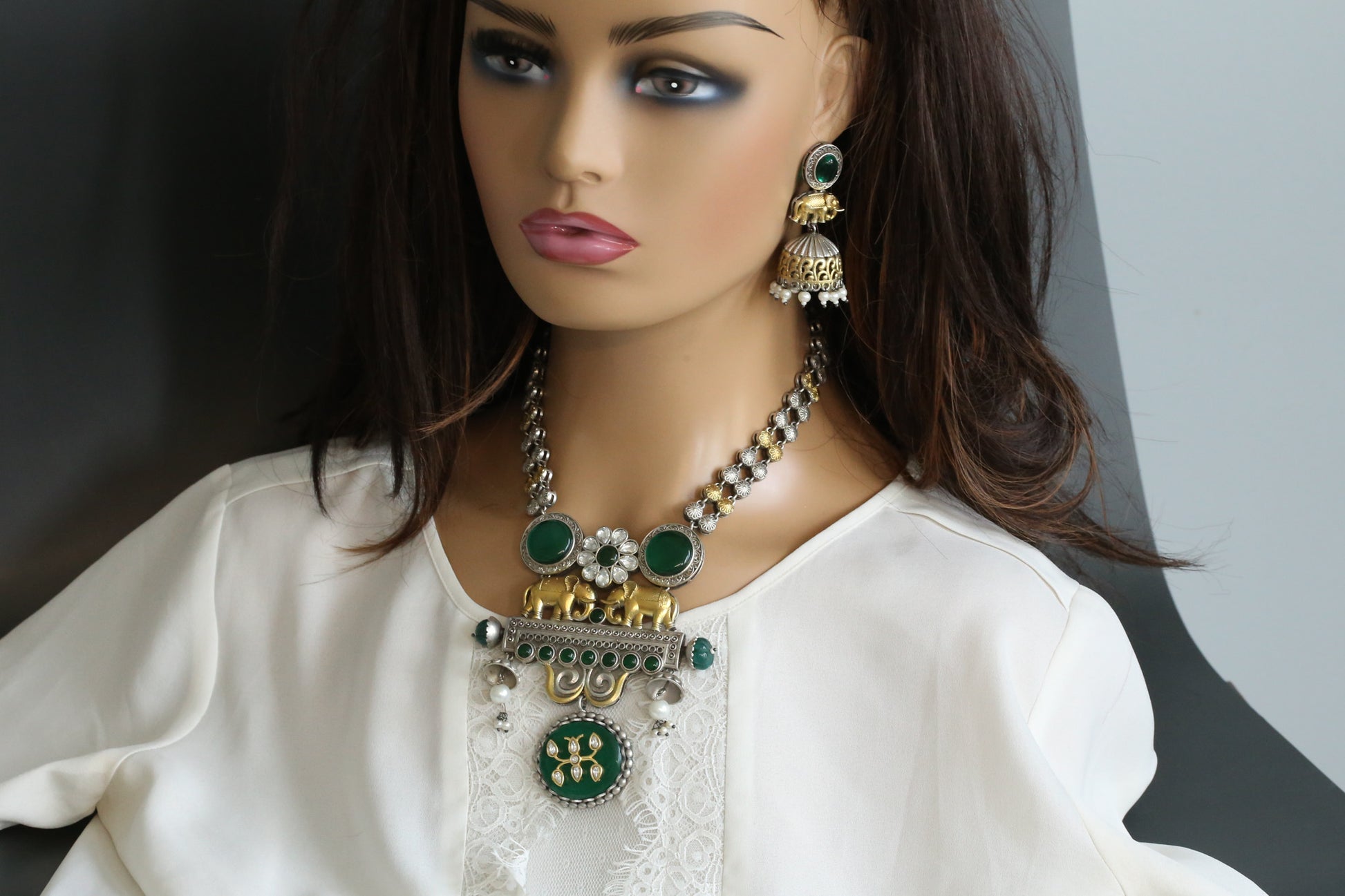 Seerat Silver Look Dual Tone Necklace Set - Green