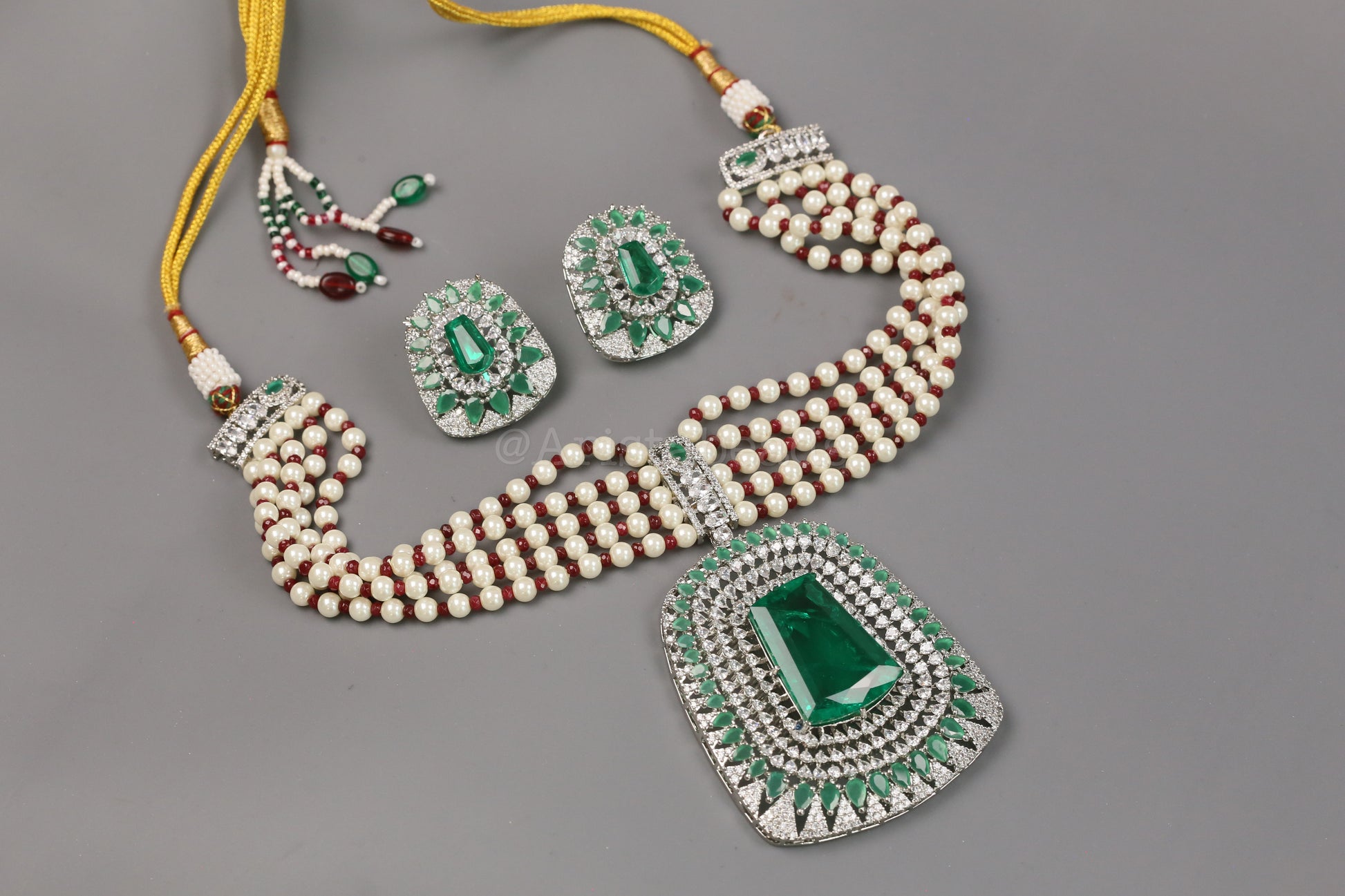 Malaika CZ & Green Doublet Necklace Set. Can be worn as a Necklace or Choker Set.