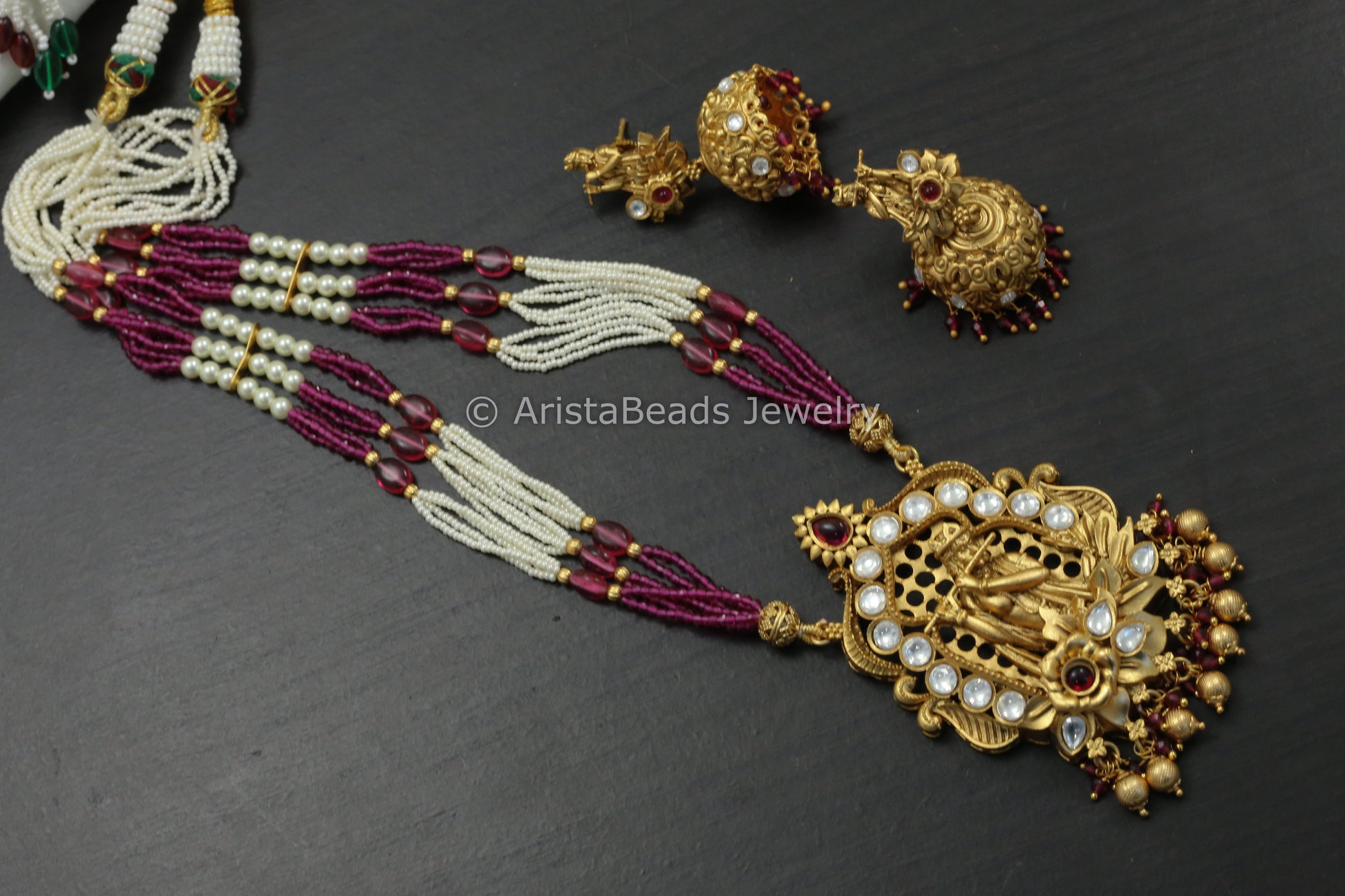 Shri Krishna Kundan Polki Necklace Set - Ruby