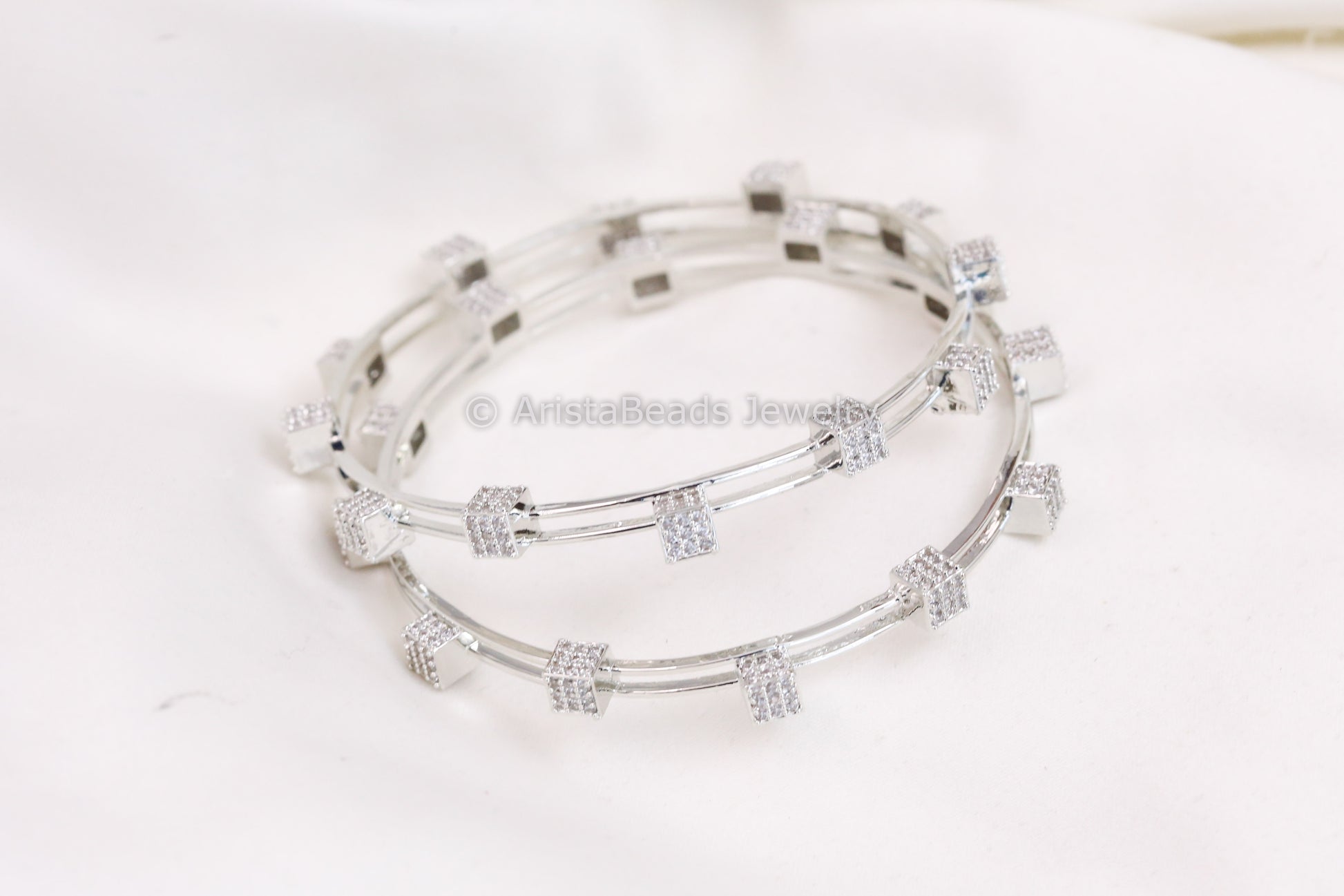 Silver Finish Contemporary CZ Bangles Set (2.4 & 2.6)