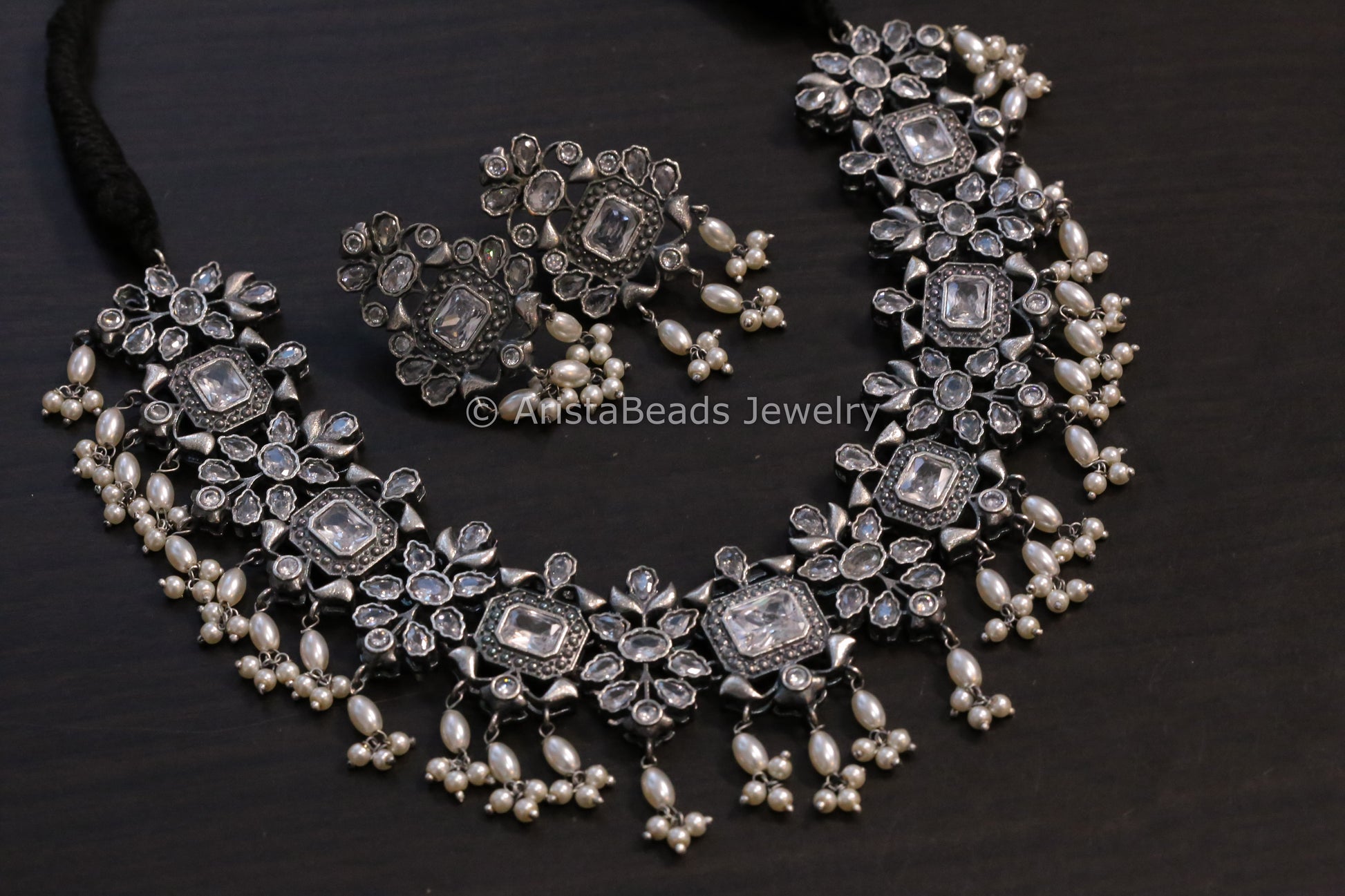 Silver Look Alike Clear Necklace Set