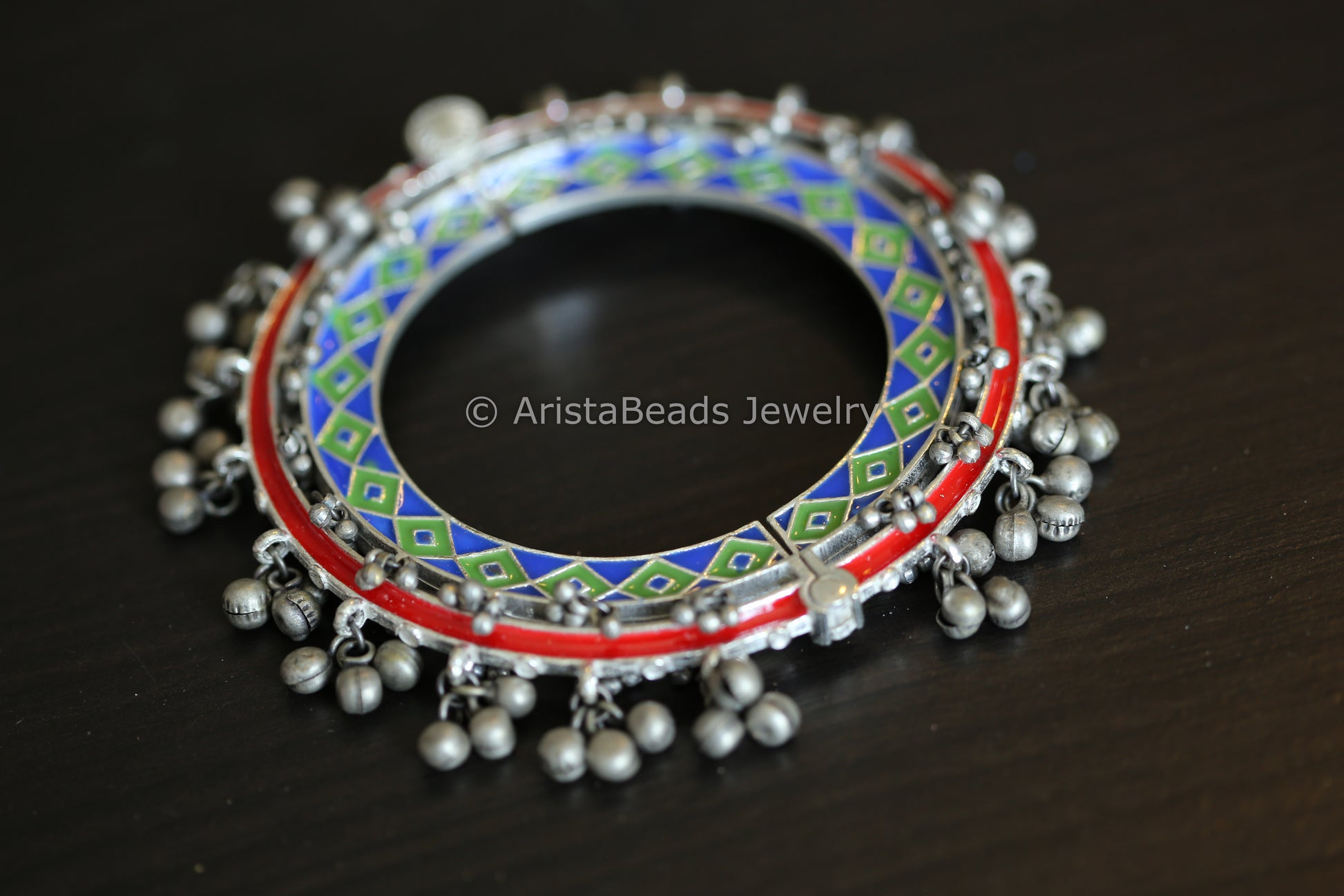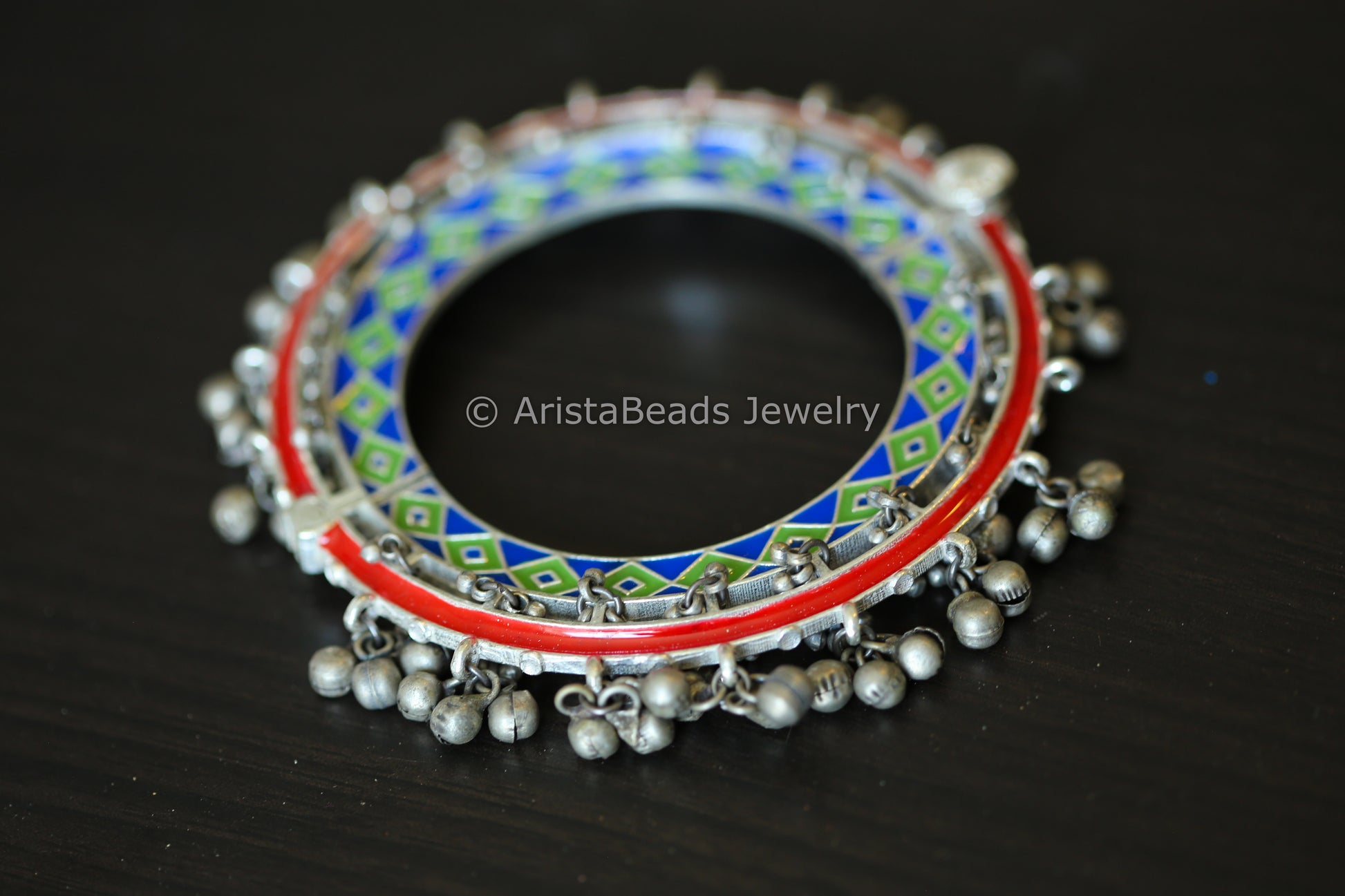 Silver Look Ghungroo Bangle - Blue Green Red