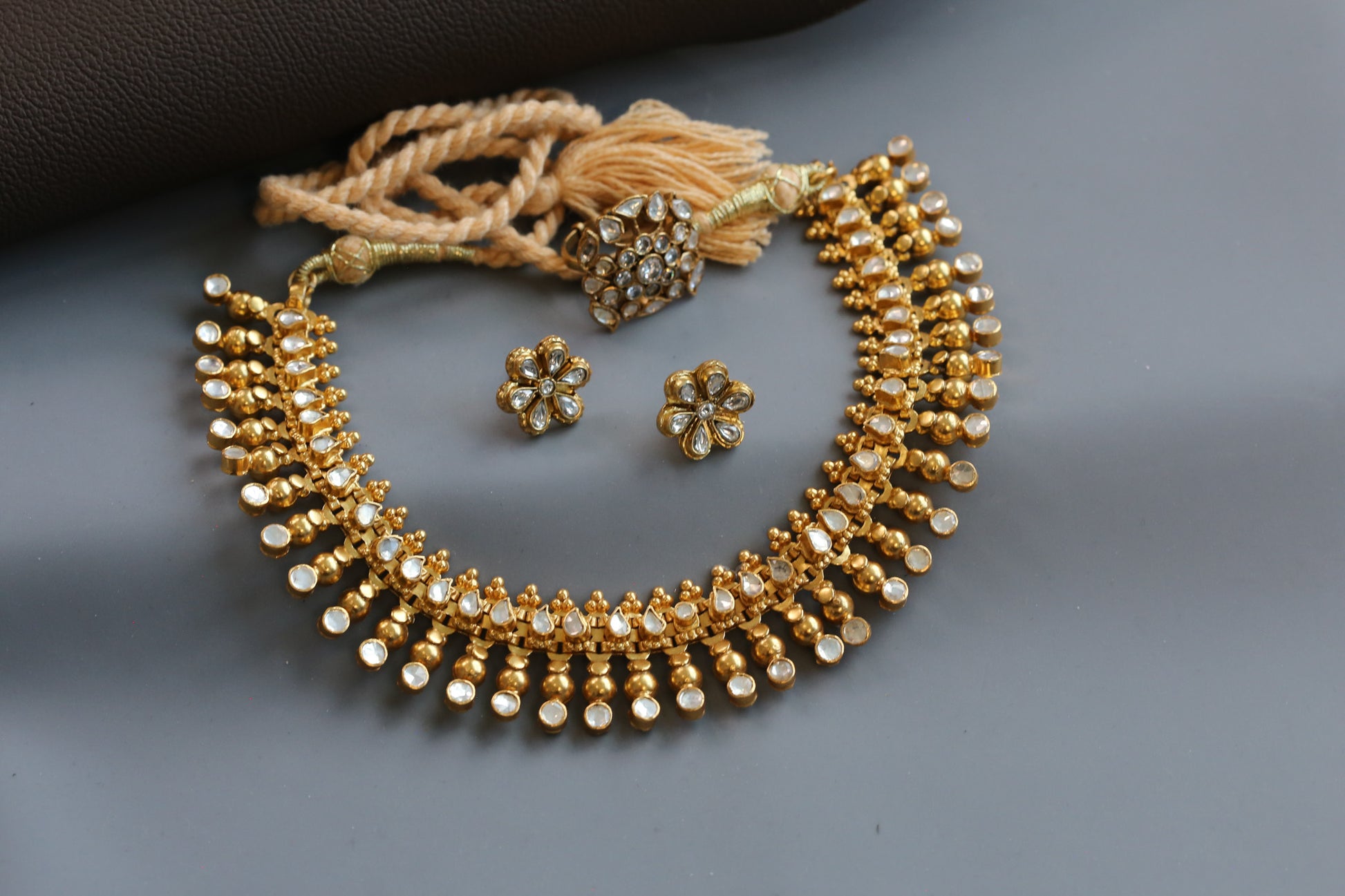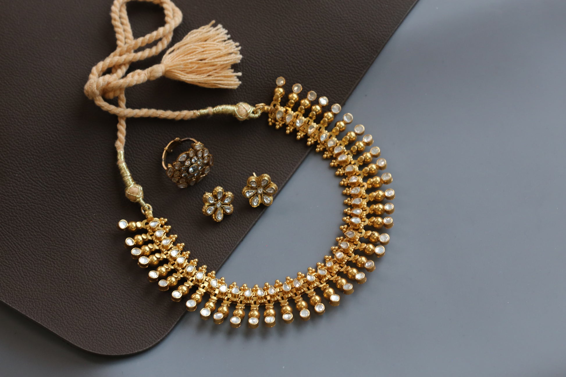 Sura 925 Silver Gold Plated Kundan Necklace Set
