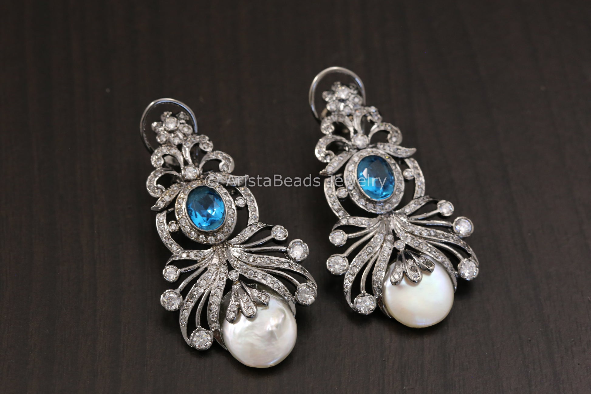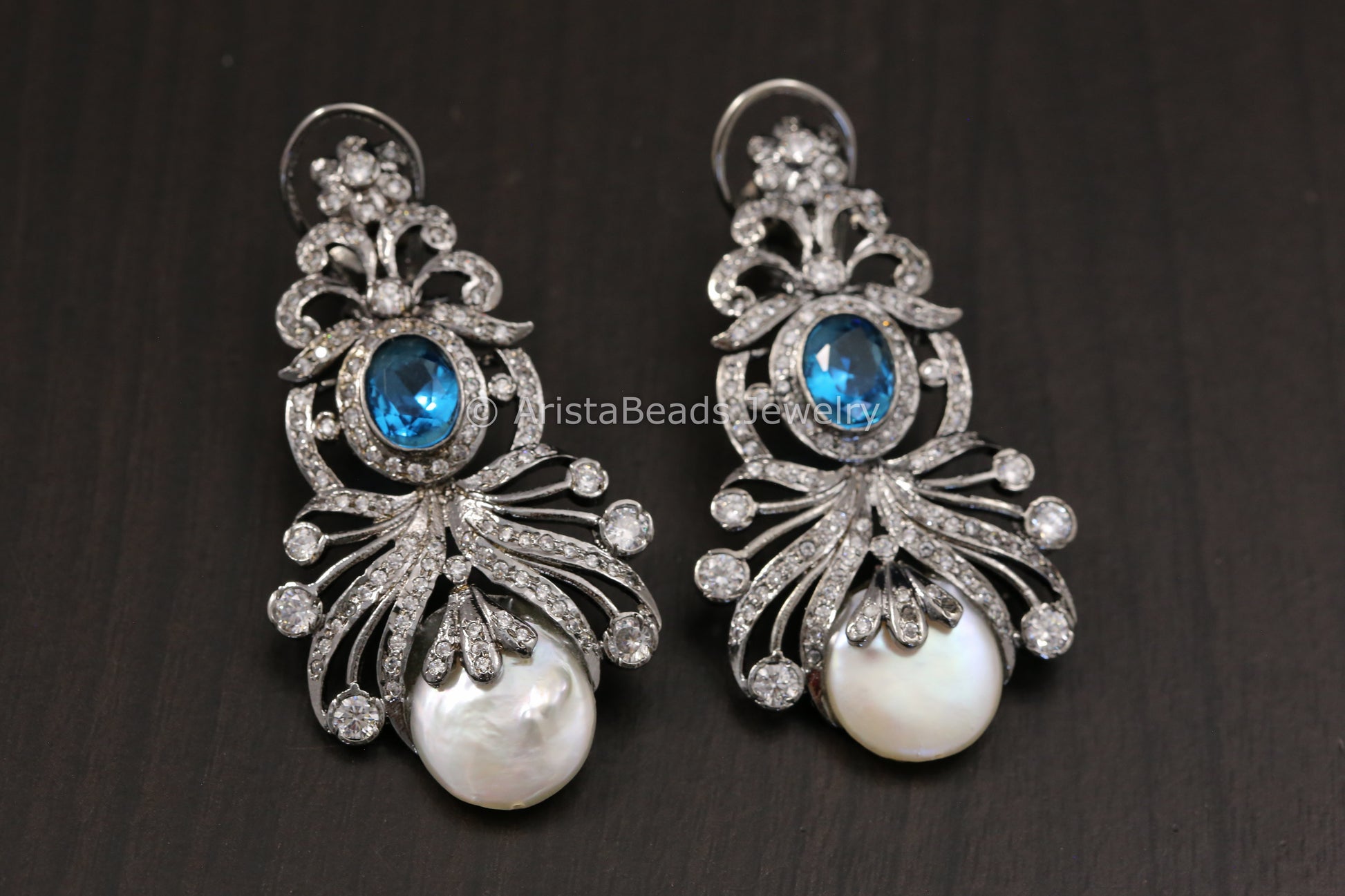 Victorian Baroque Pearl Earrings - Sapphire Blue