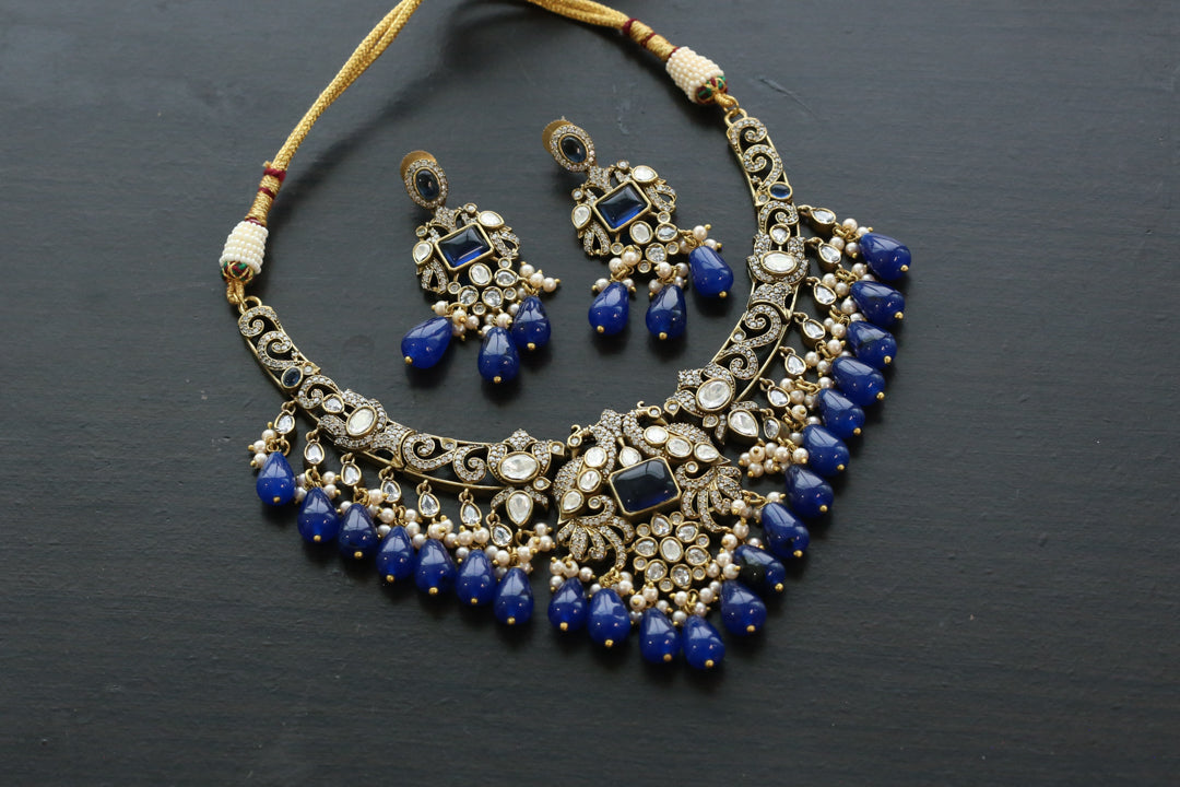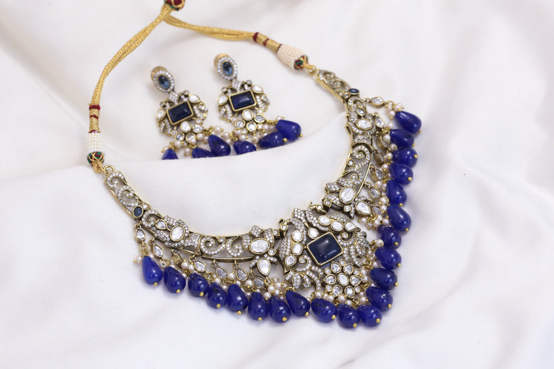 Victorian Mangatrai Look Alike Blue Necklace Set