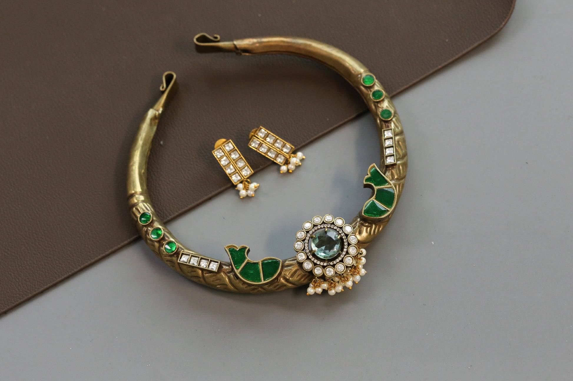 Vintage Look Rubina Hasli Necklace Set - Mint